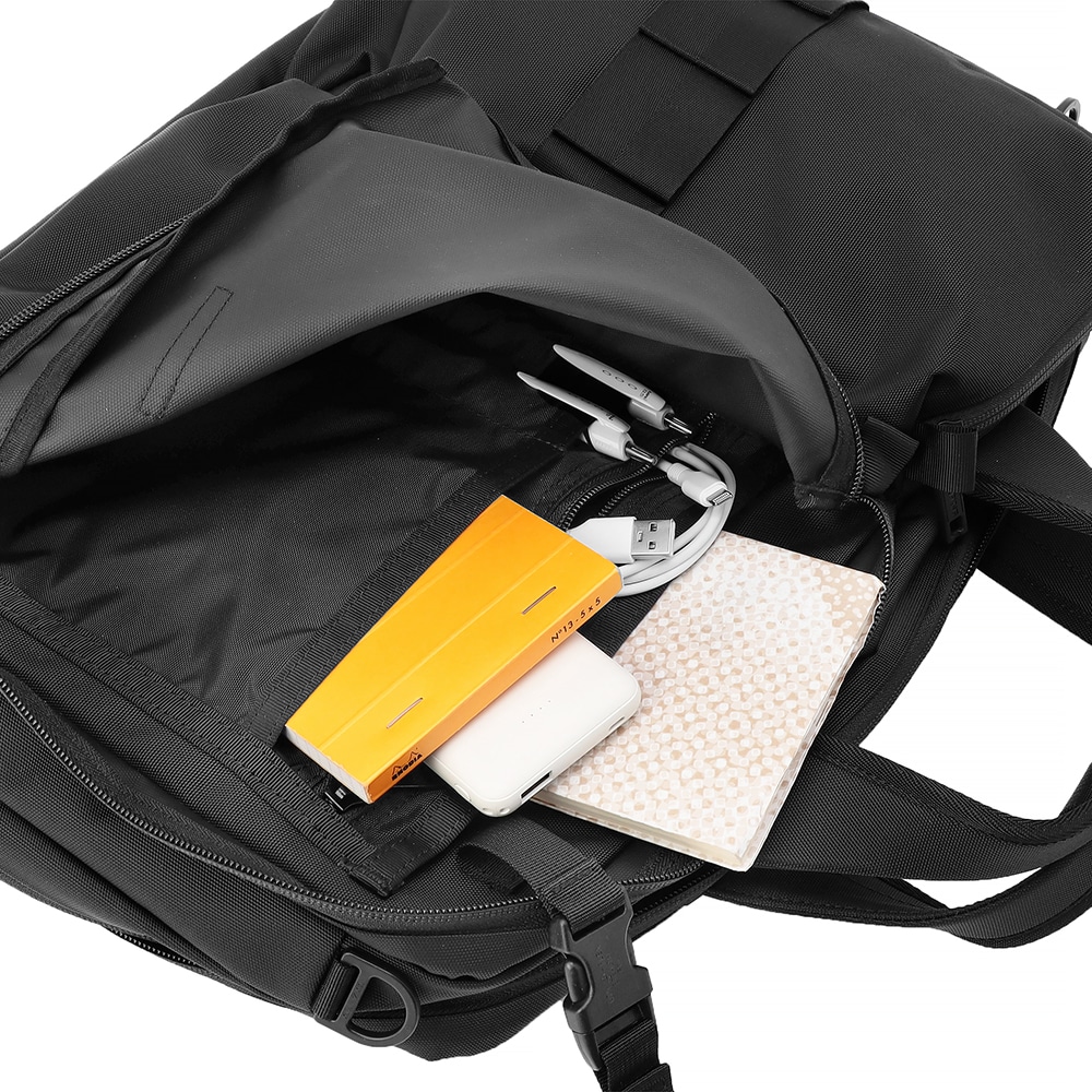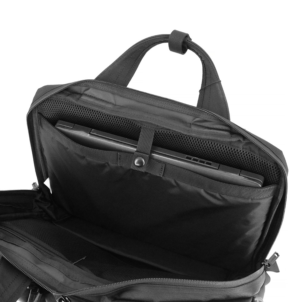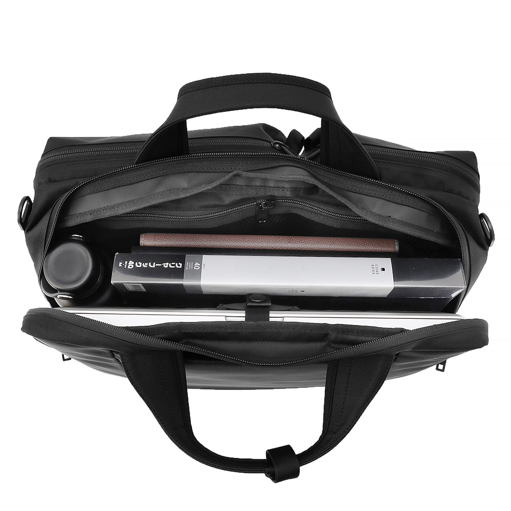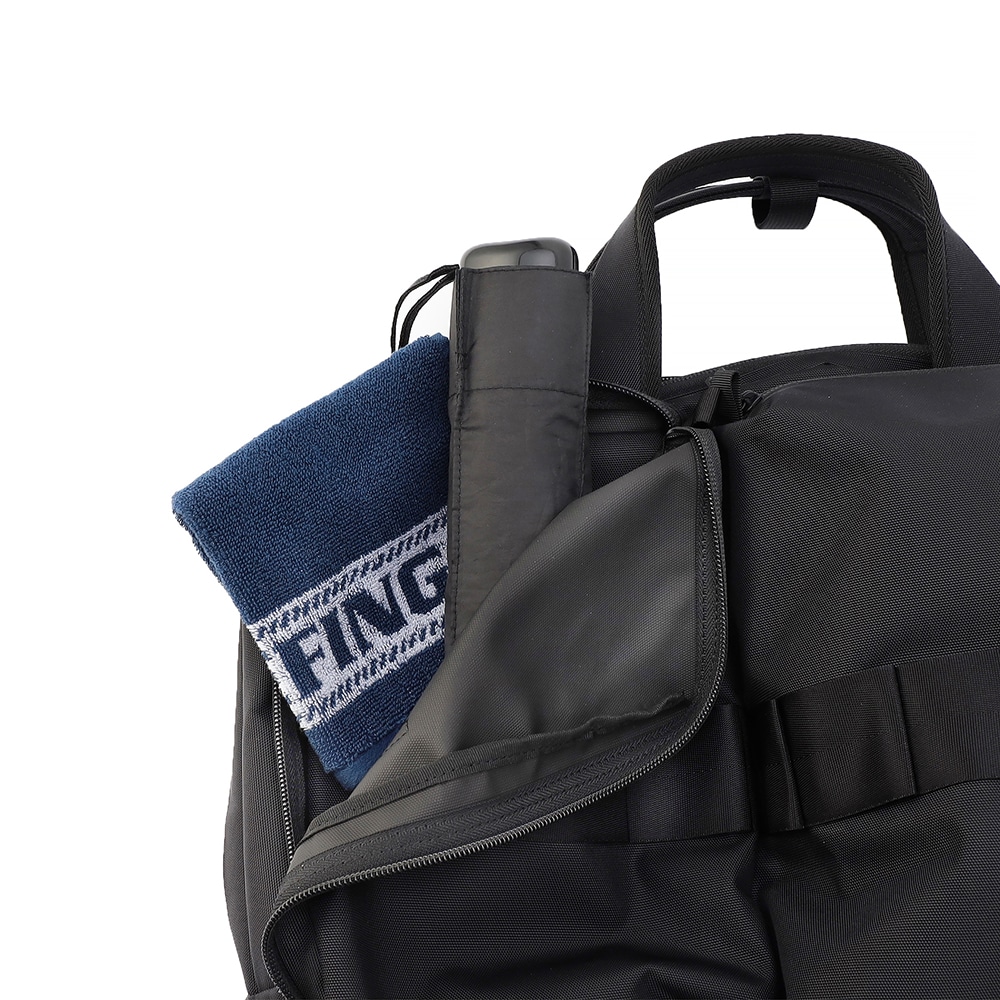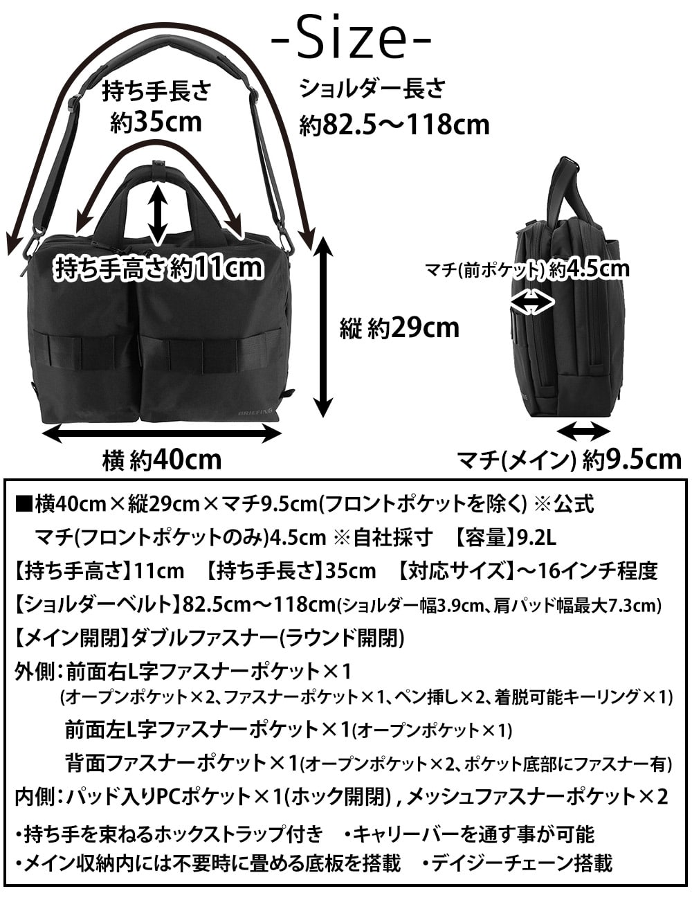 無駄を省いたデザインとオールブラックの色使いがソリッドな2WAYブリーフケース。