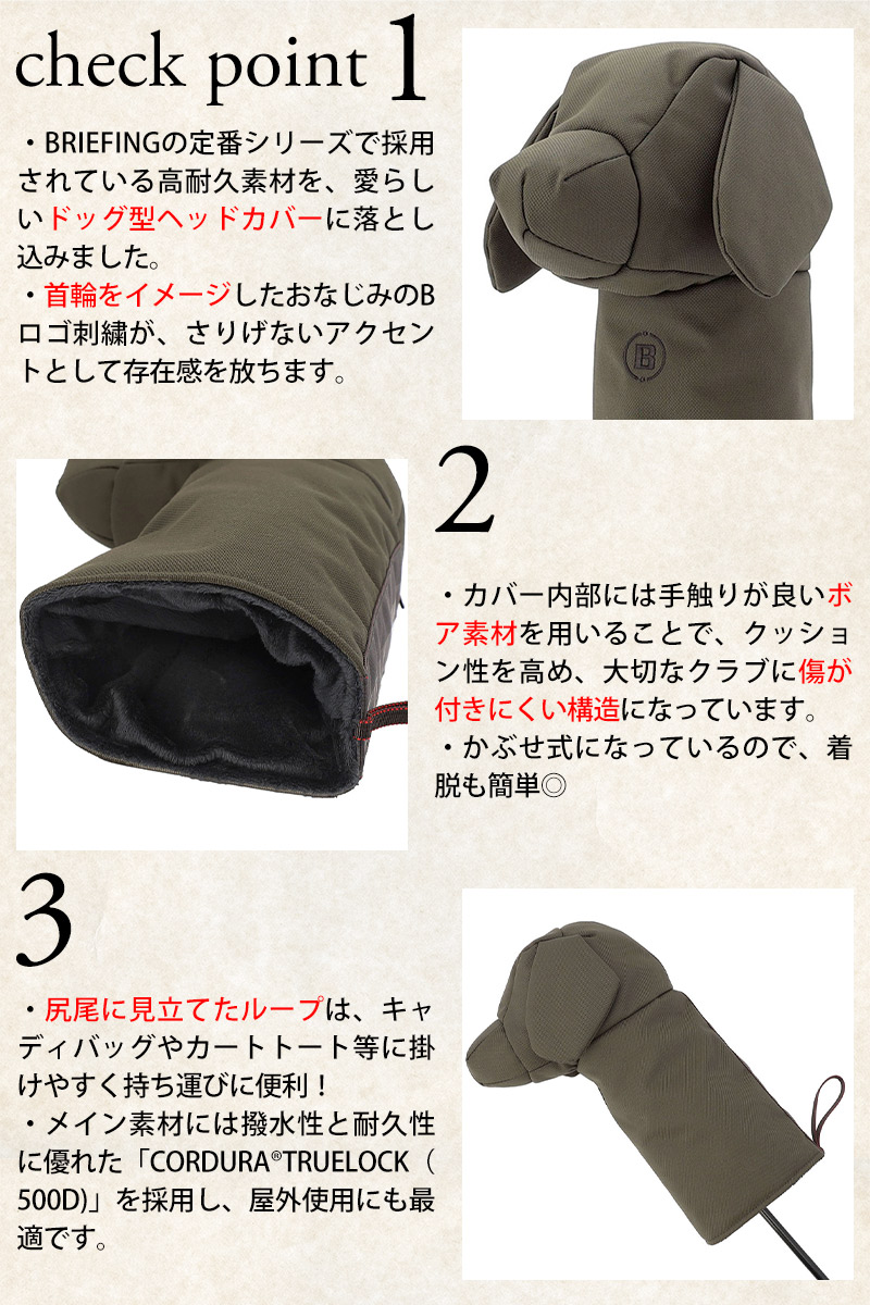 BRIEFING定番シリーズと同じ素材を、人気のドッグ型ヘッドカバーにも使用。
