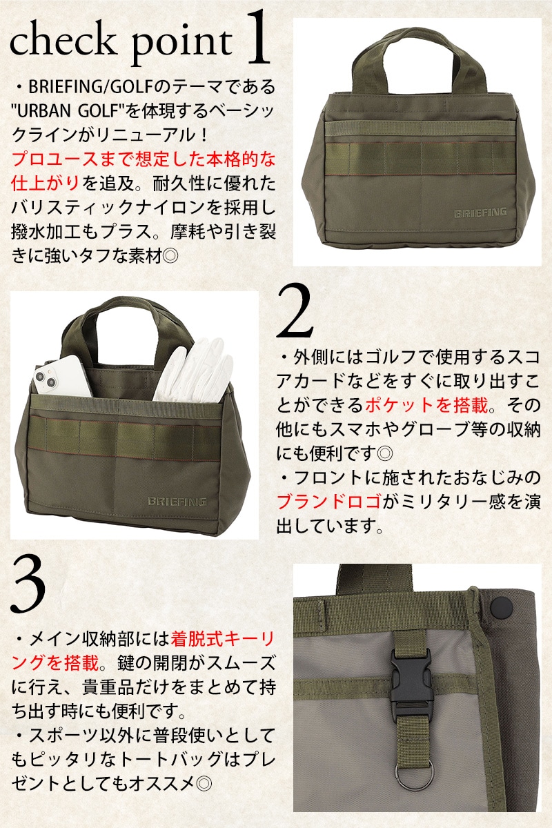スコアカードや予備のボールなどを入れられるカートトートは普段使いも出来るデザイン&フォルム。