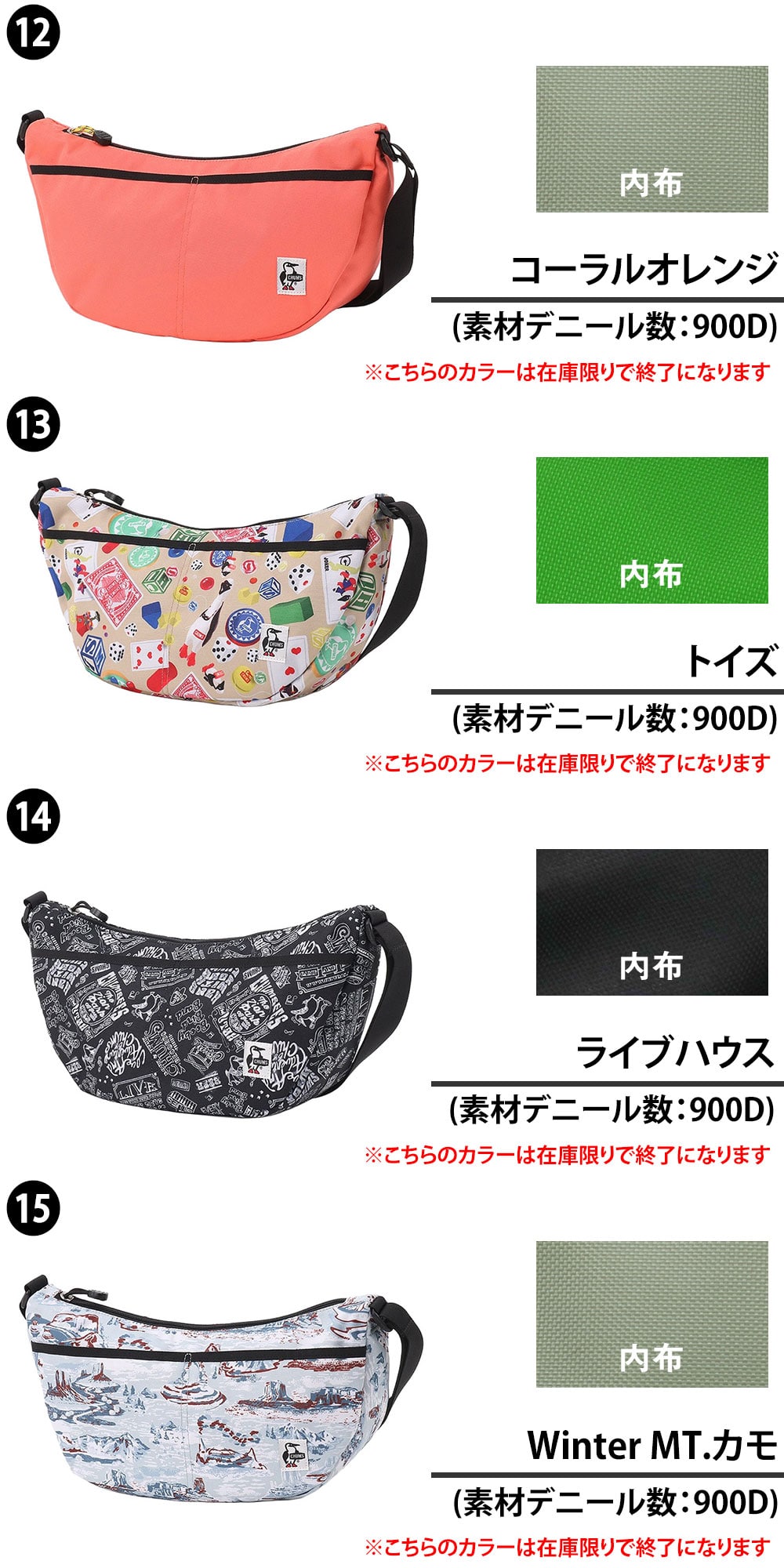 身体にフィットする形状で動きやすいCHUMS定番ショルダーバッグ。