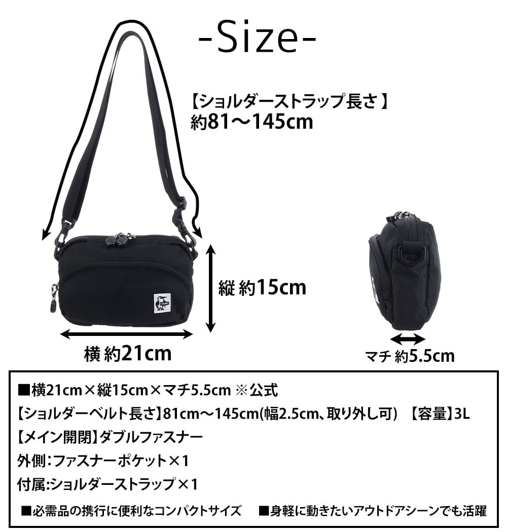【ショルダーベルト長さ】81cm~145cm(幅2.5cm、取り外し可)