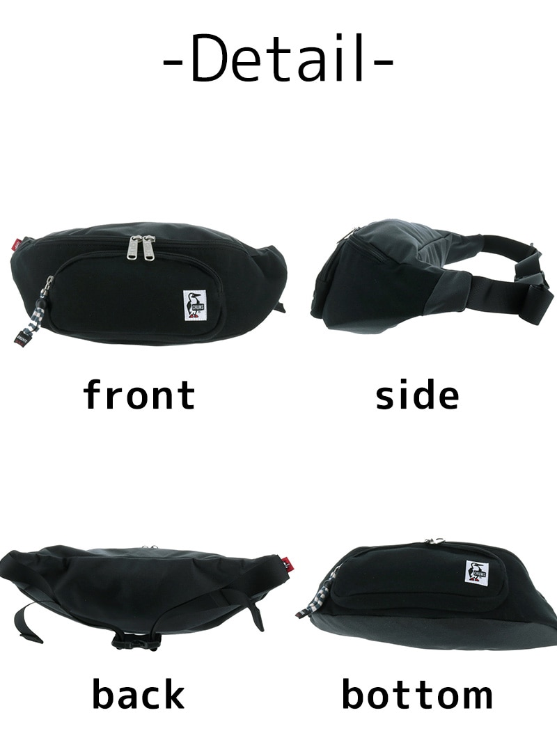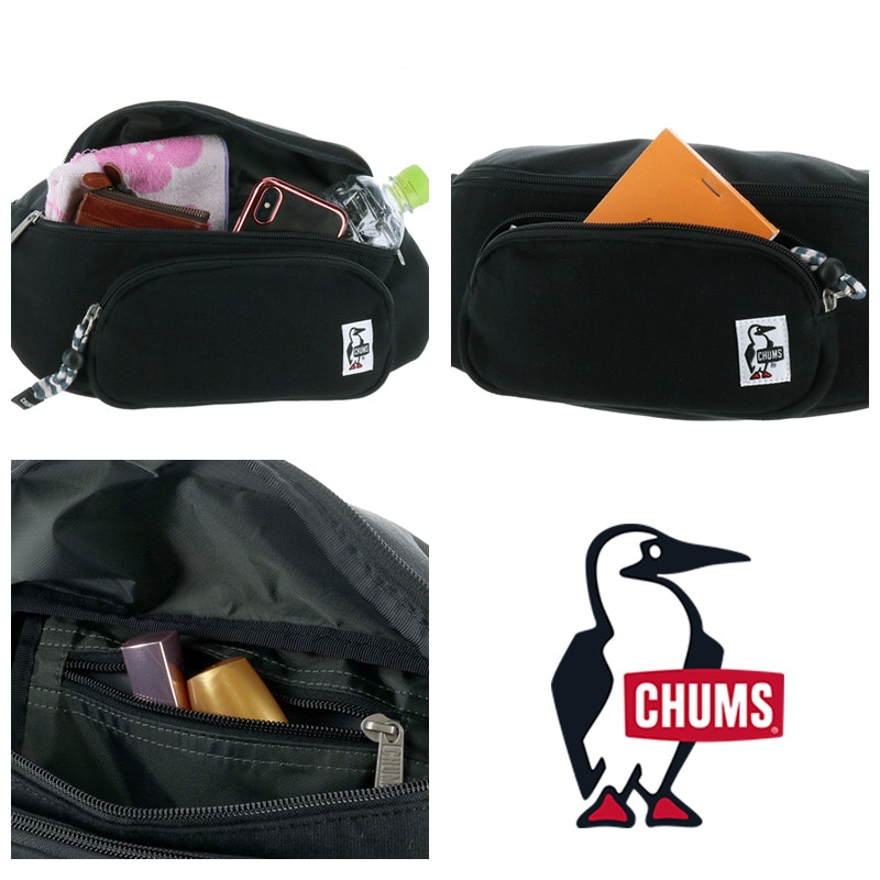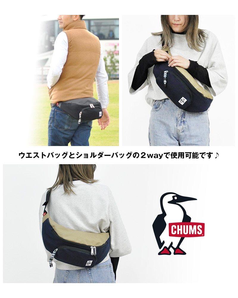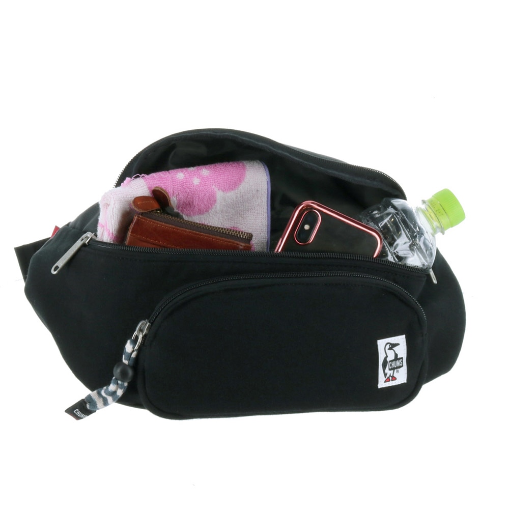500mlの飲み物や長財布が収まる収納力が自慢のCHUMS定番ウエストバッグ。
