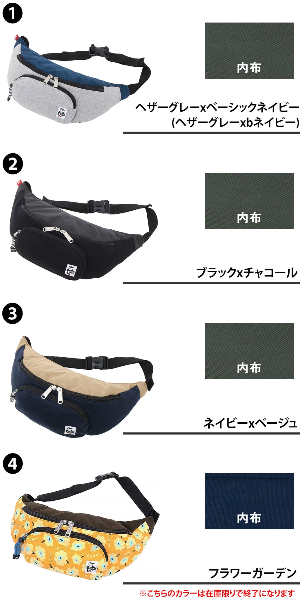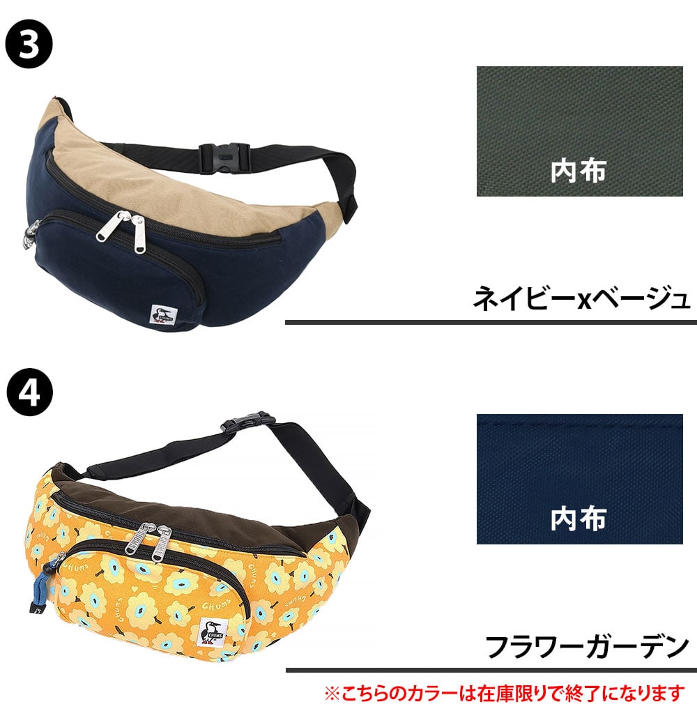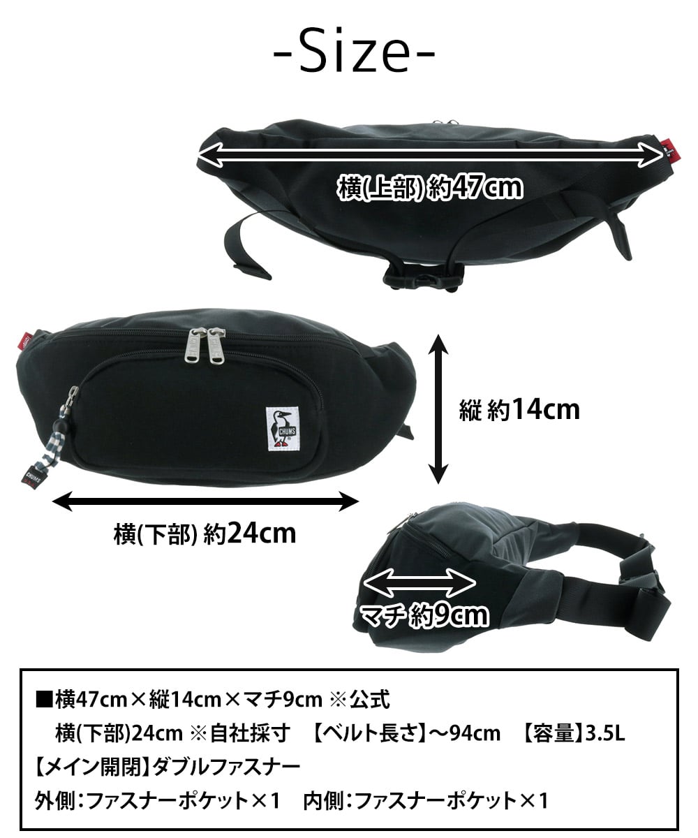 500mlの飲み物や長財布が収まる収納力が自慢のCHUMS定番ウエストバッグ。