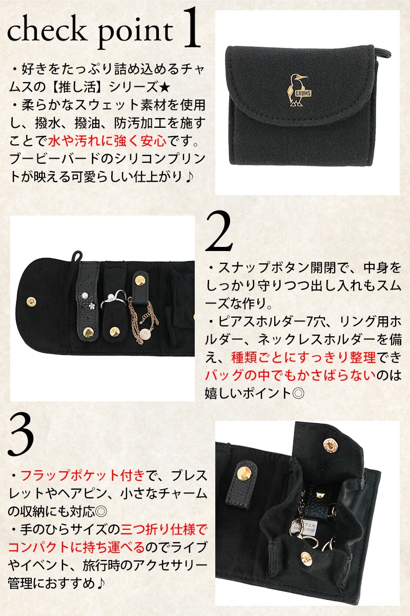 【母の日】 チャムス バッグ 小物 アクセサリーケース 三つ折り CHUMS 推し活 コンパクトアクセサリーズケーススウェット CH60-4013 メンズ レディース キッズ 誕生日プレゼント ギフト ラッピング無料 正規代理店 1.ブラック -604013k001