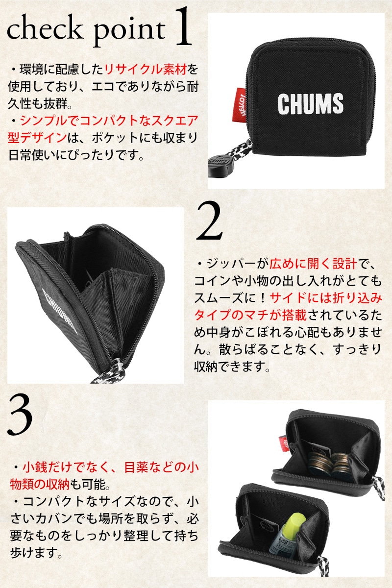 四角いフォルムがかわいくもどこか大人っぽい、チャムスのコインケース。