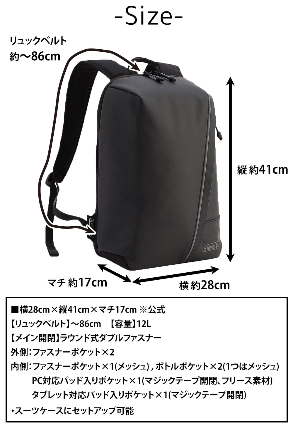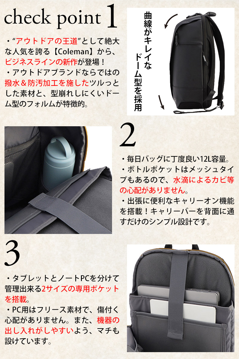 コールマン バッグ リュックサック デイパック バックパック ビジネスリュック アウトビズ アウトビズドーム 12L B4 A4 B5 メンズ レディース 誕生日プレゼント 正規代理店 ブラック -2214024