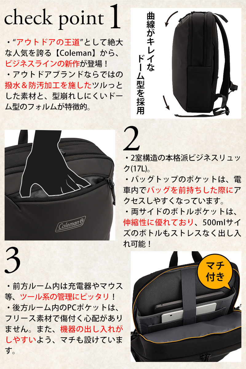 コールマン バッグ リュックサック デイパック バックパック ビジネスリュック アウトビズ アウトビズドーム 17L B4 A4 B5 メンズ レディース 誕生日プレゼント 正規代理店 ブラック -2214028