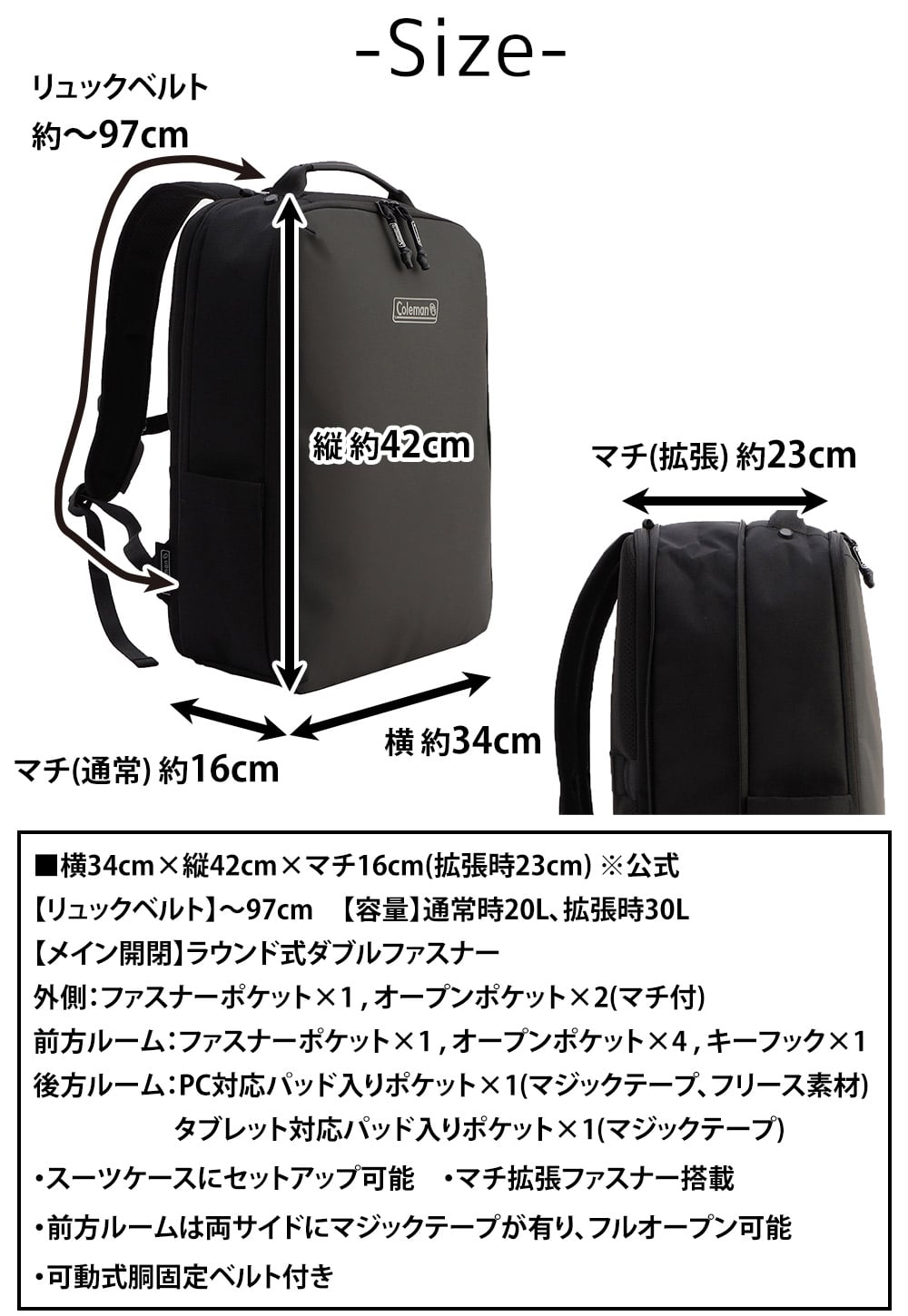 拡張機能を搭載した高スペックモデルで、拡張時は30Lまで収納可能。