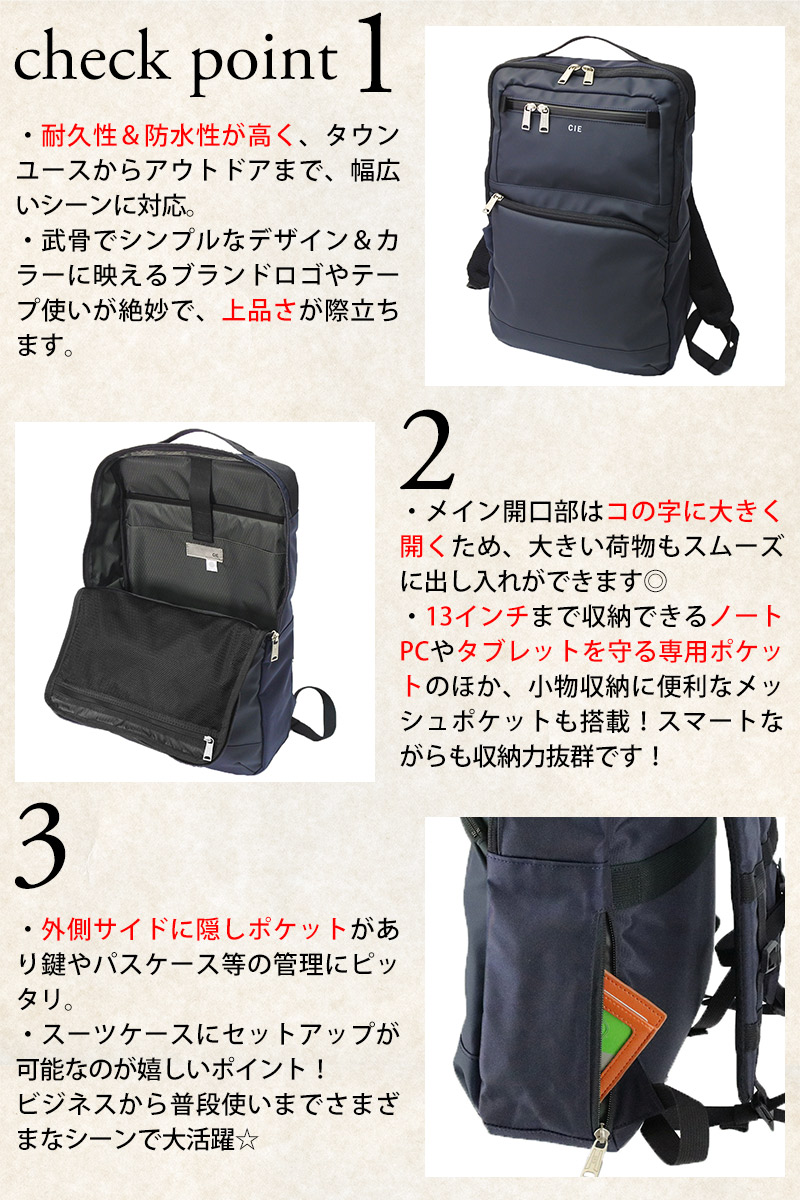 【母の日】 シー バッグ リュックサック デイパック CIE バリアス スクエアバックパック01 10L A4サイズ 13インチ 021826 メンズ レディース 日本製 誕生日プレゼント ギフト 【正規代理店】 3.ネイビー -75
