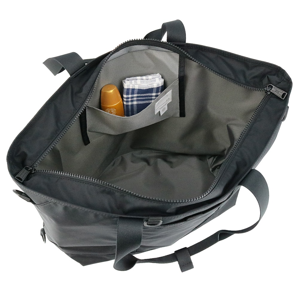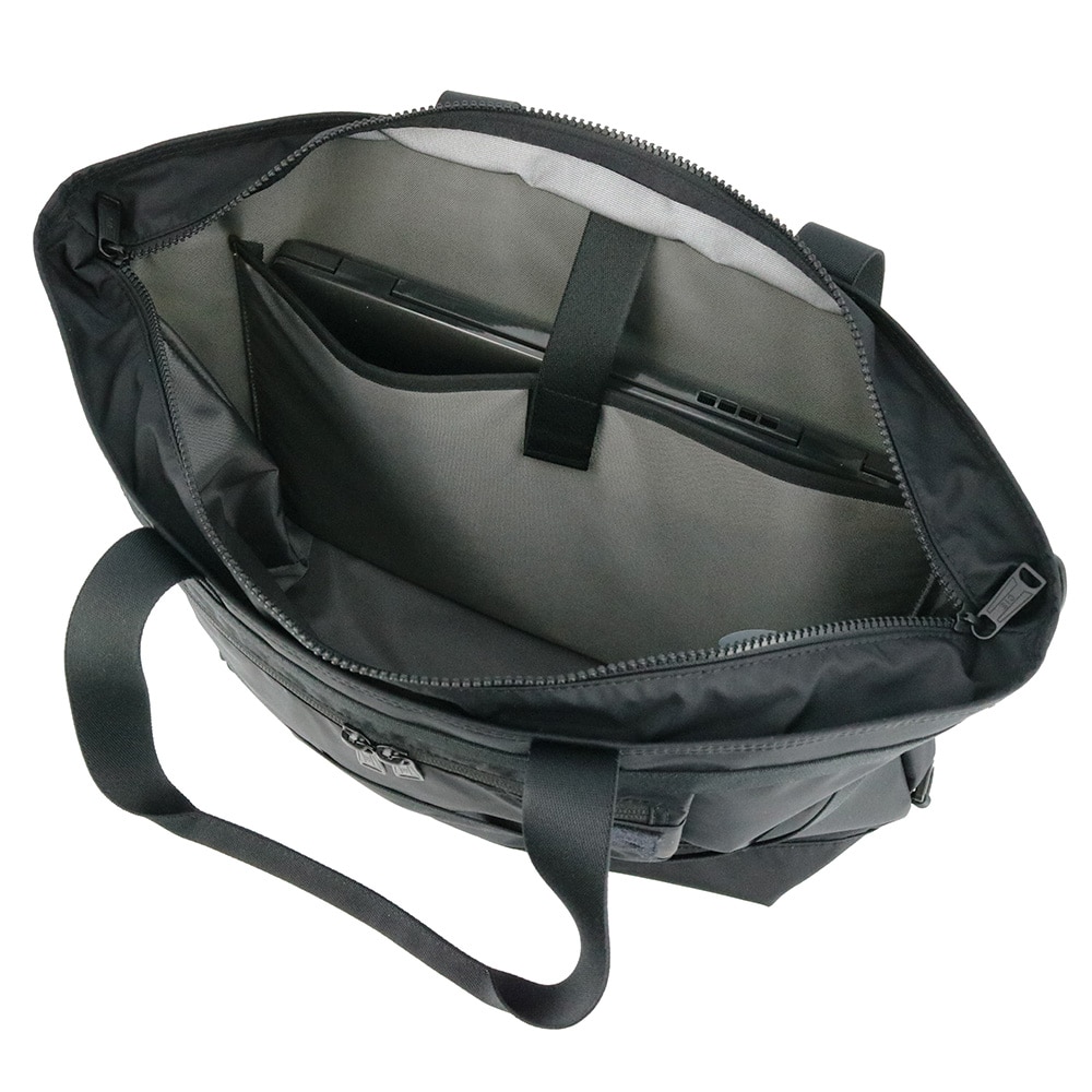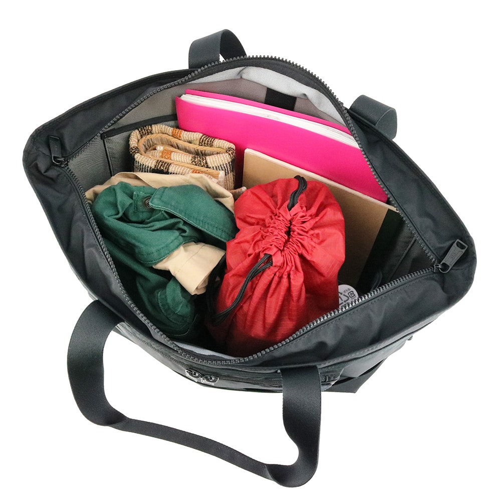 A4サイズに対応した台形フォルムのトートバッグ。ノートPCや書類をしっかり守るのでビジネスシーンでも大活躍。