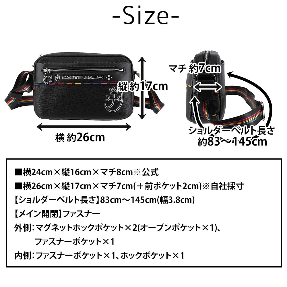 カステルバジャック バッグ 横型ショルダーバッグ 小さめ 斜めがけ CASTELBAJAC ジューン A5サイズ 28171 メンズ レディース 送料無料 誕生日プレゼント ギフト ラッピング無料 正規代理店 1.ブラック -blk