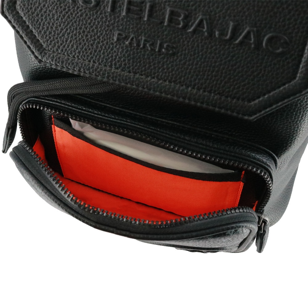 表面は滑らかで程よい光沢感があり、フラップや立体ポケットのデザインを引き立てます。