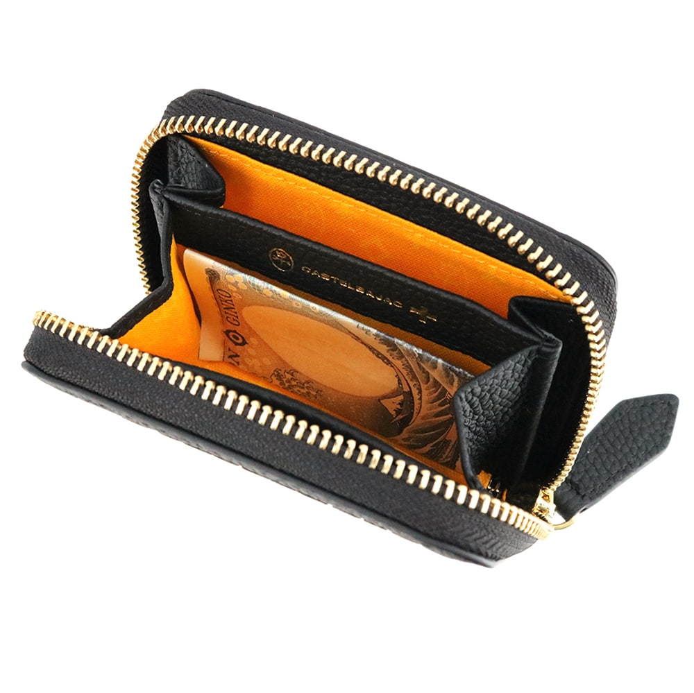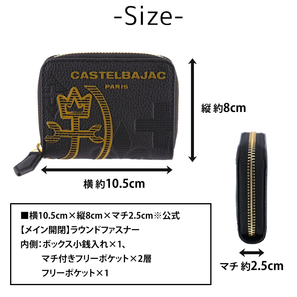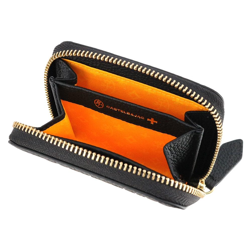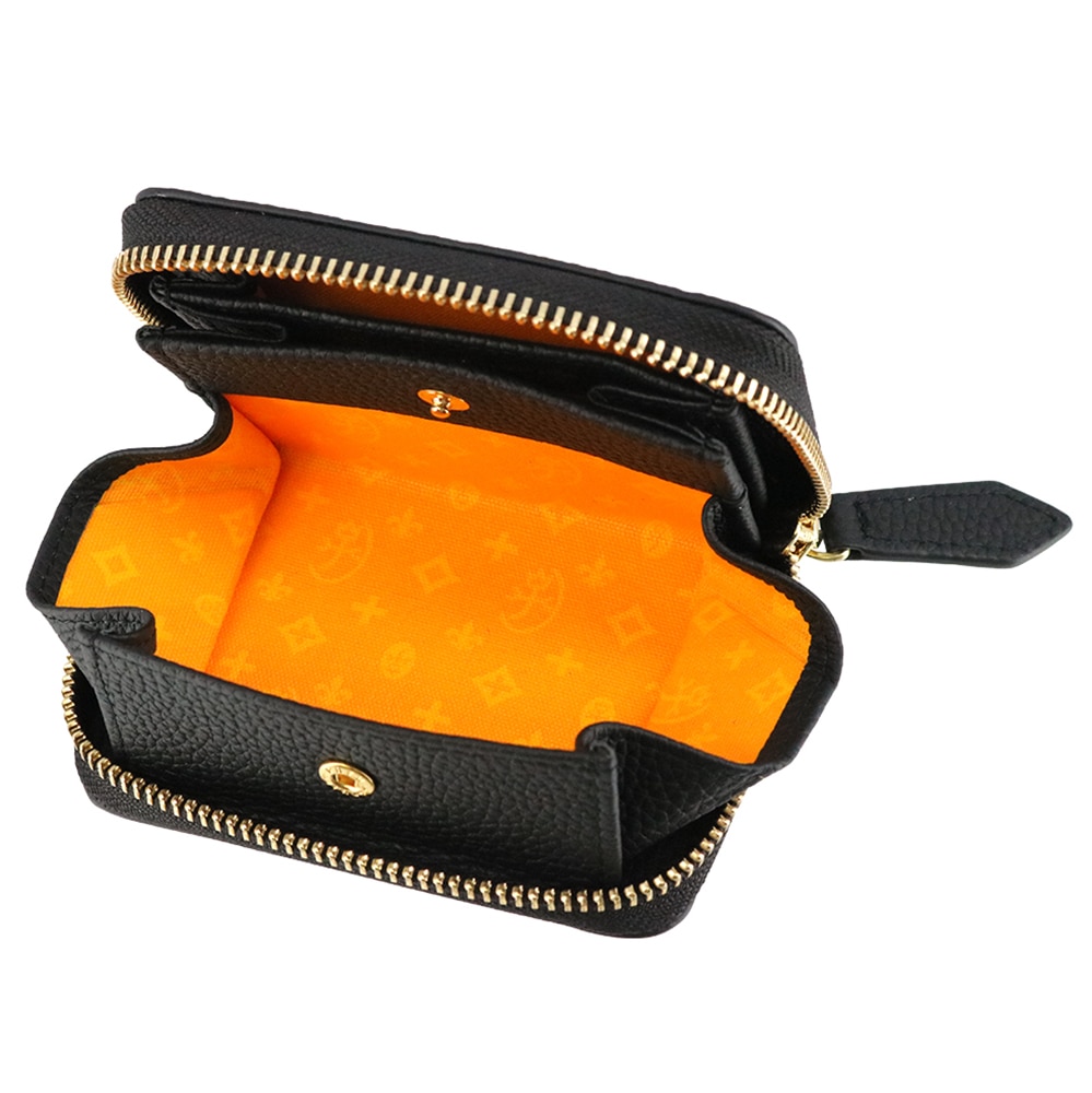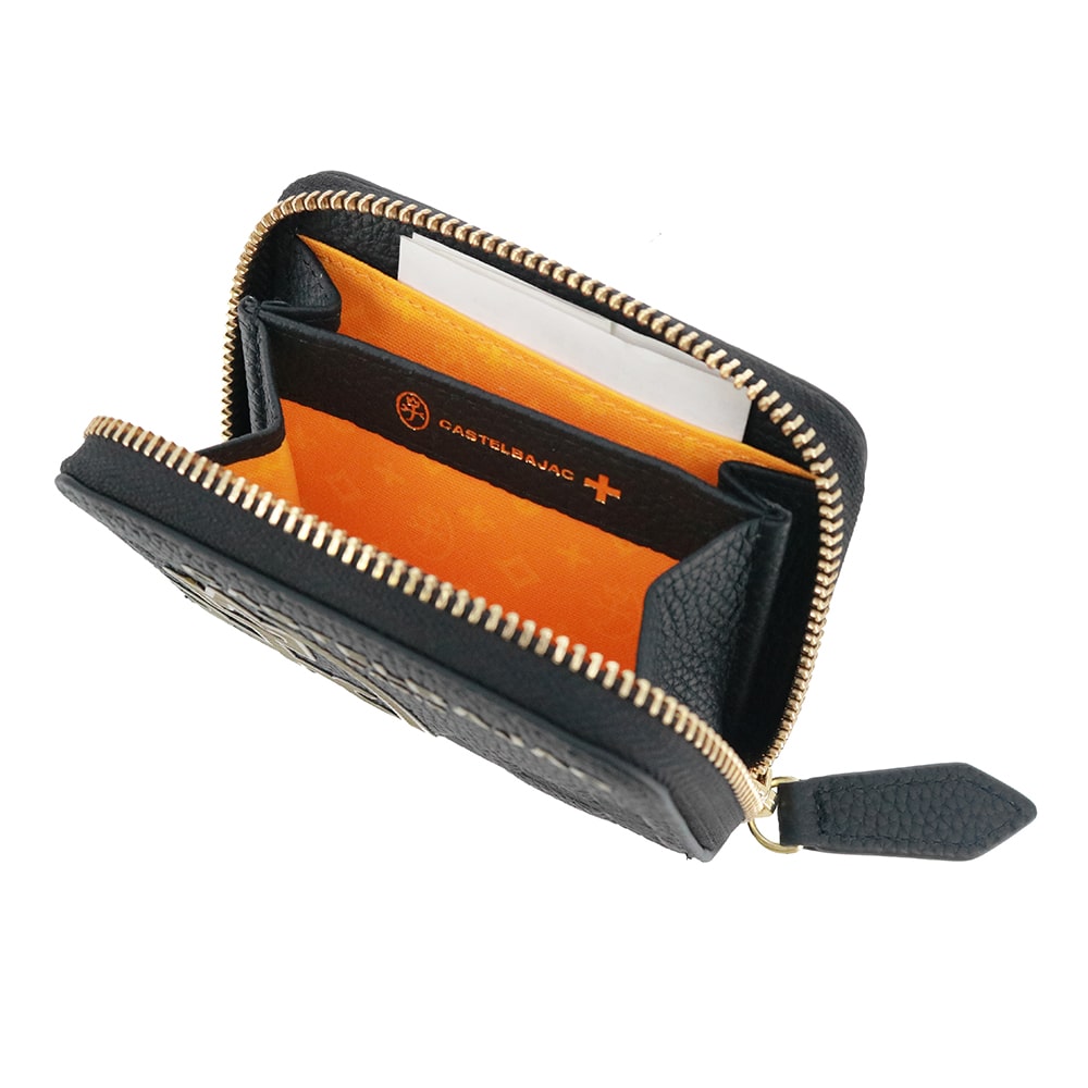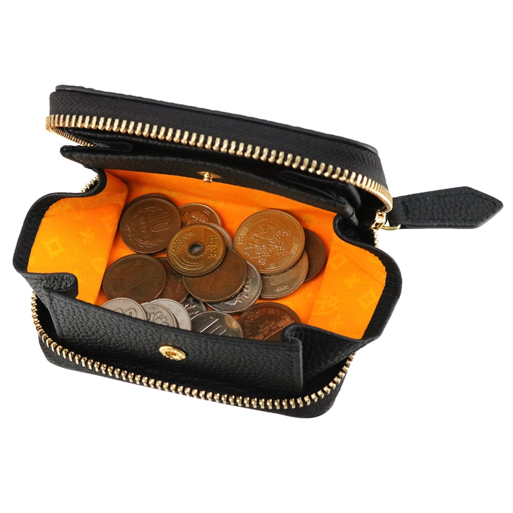 中身をしっかり保護するラウンドファスナー開閉と、小銭を取り出しやすく設計されたボックスタイプの小銭入れを採用しました。