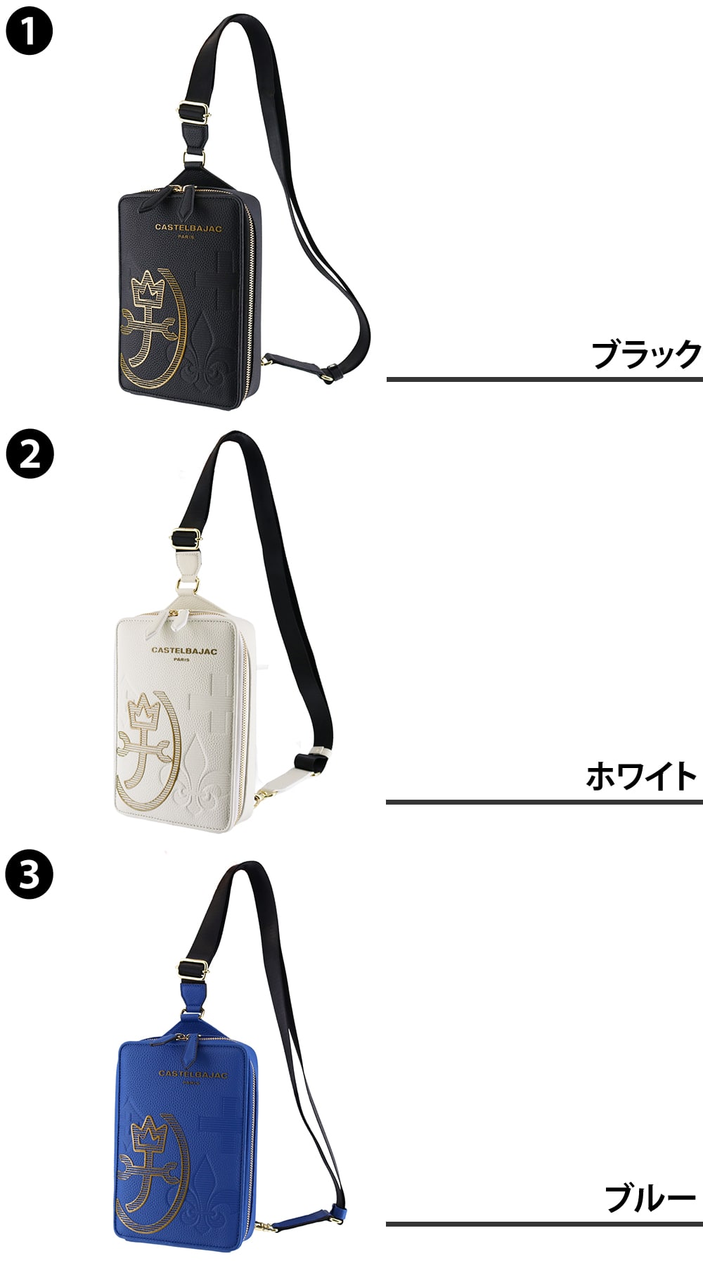 カステルバジャック バッグ ボディバッグ 斜めがけバッグ CASTELBAJAC カヌレ ワンショルダーバッグ タテ型 A6サイズ 35922 メンズ レディース 本革 送料無料 誕生日プレゼント ギフト ラッピング無料 【正規代理店】 3.ブルー -blu