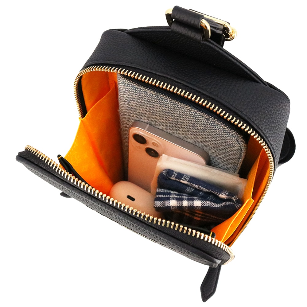 財布やスマホなど必要最低限の荷物をスマートに持ち運べる縦型ボディバッグ。