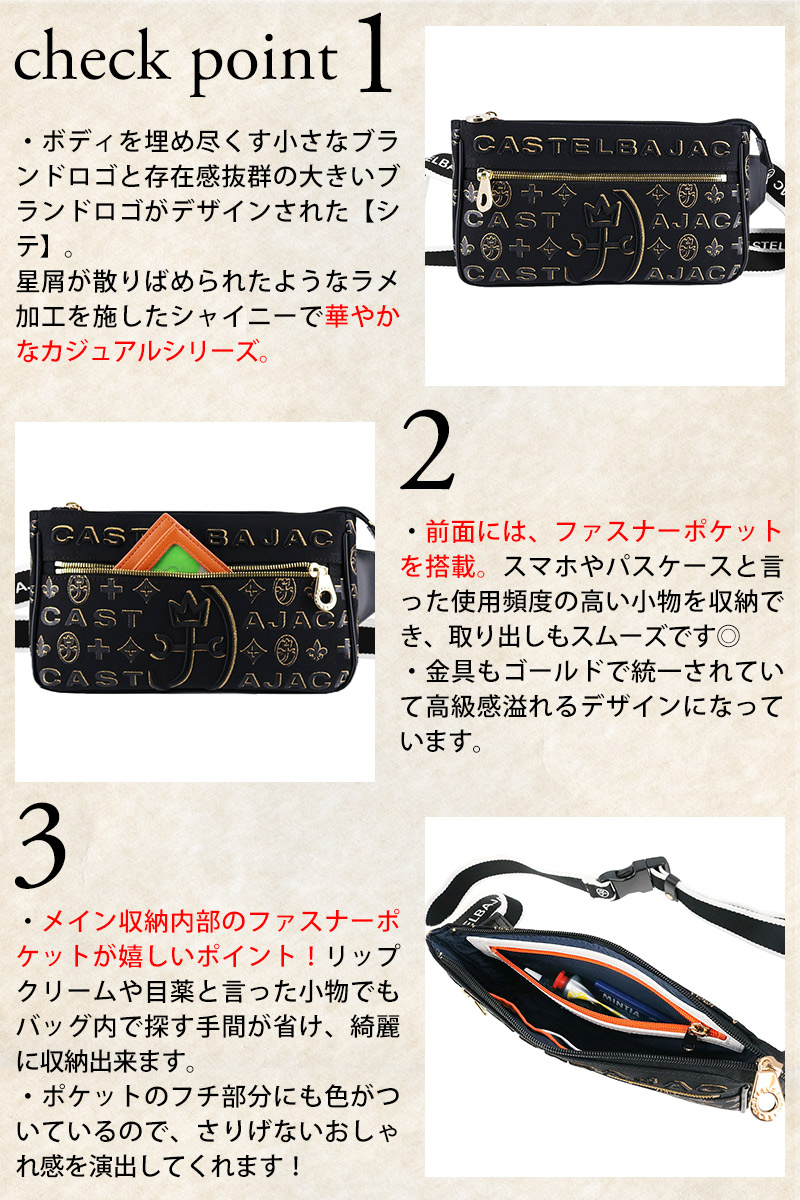 カステルバジャック バッグ 横型ワンショルダーバッグ 斜めがけバッグ CASTELBAJAC シテ ボディバッグ B6サイズ 89951 メンズ レディース 本革 コットン 送料無料 誕生日プレゼント ギフト ラッピング無料 【正規代理店】 1.ブラック -blk