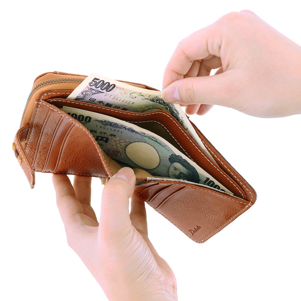収まりの良さと機能性を兼ね備えた二つ折り財布。