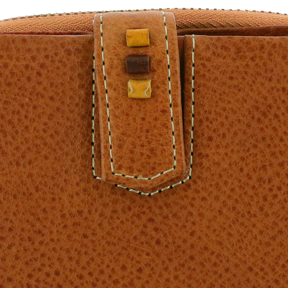 エイジングが魅力のイタリアンレザーに革でできた小さなビーズをあしらい、控えめな可愛さを演出しました。
