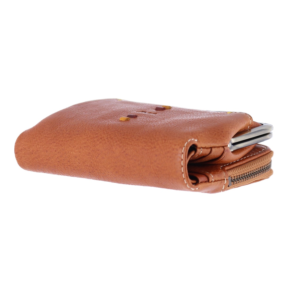 エイジングが魅力のイタリアンレザーに革でできた小さなビーズをあしらい、控えめな可愛さを演出しました。