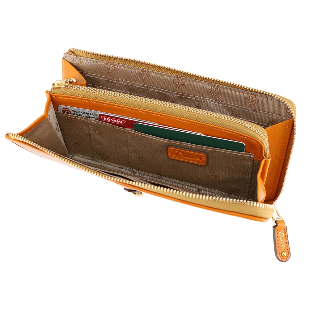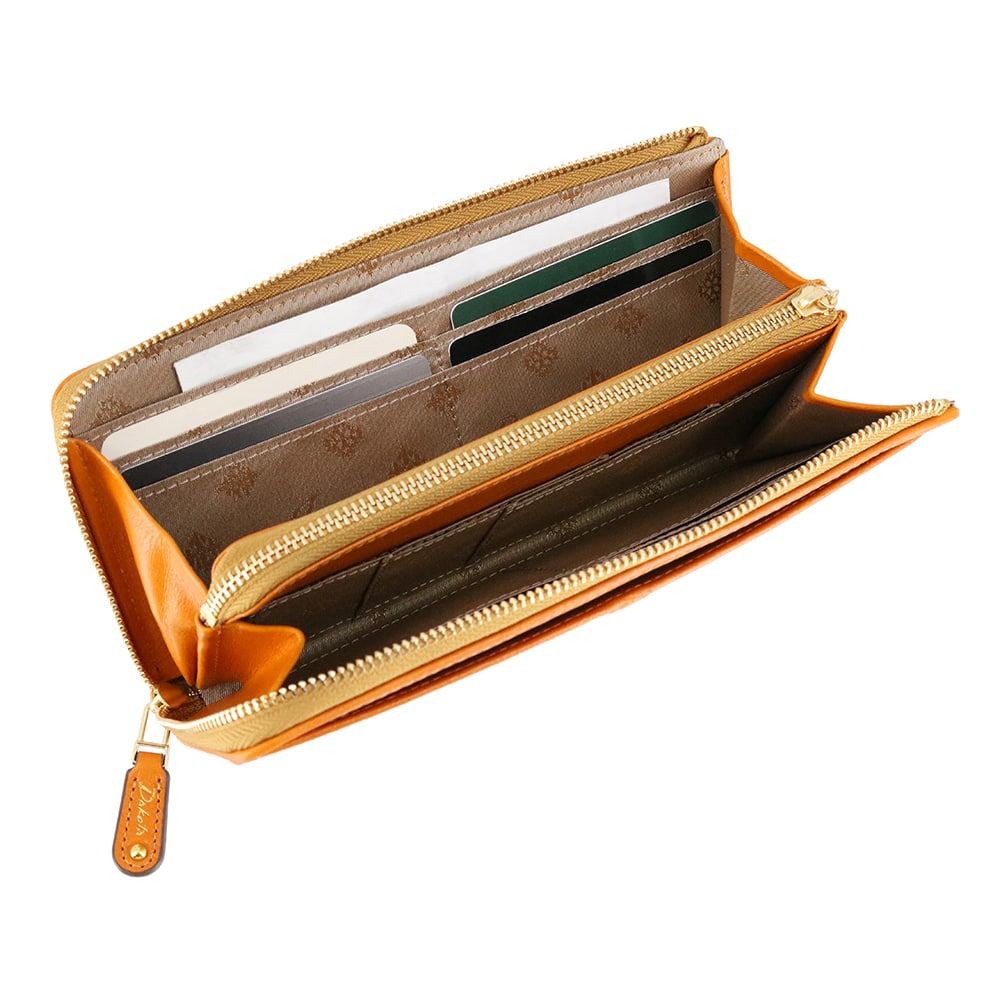 薄マチのバッグにもスッと収まるスリムなL字ファスナータイプの長財布。