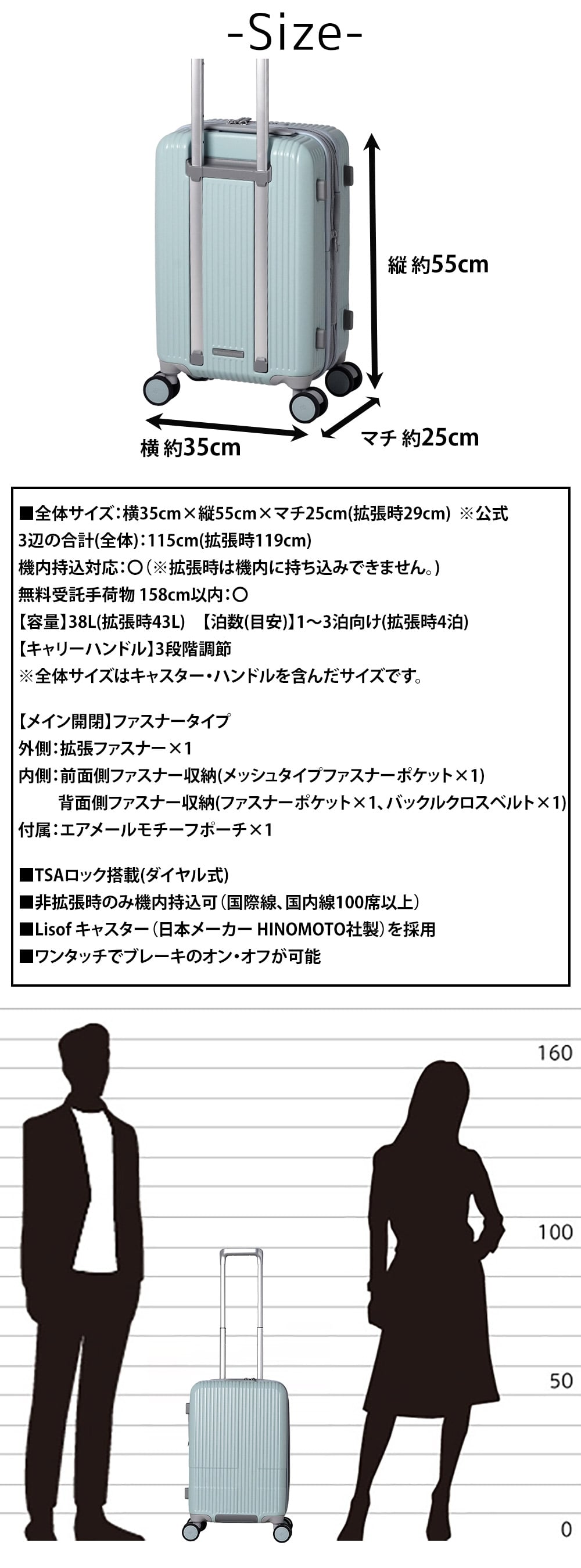 機内持込対応:〇(※拡張時は3辺合計115cmをオーバーするため機内に持ち込みできません。)