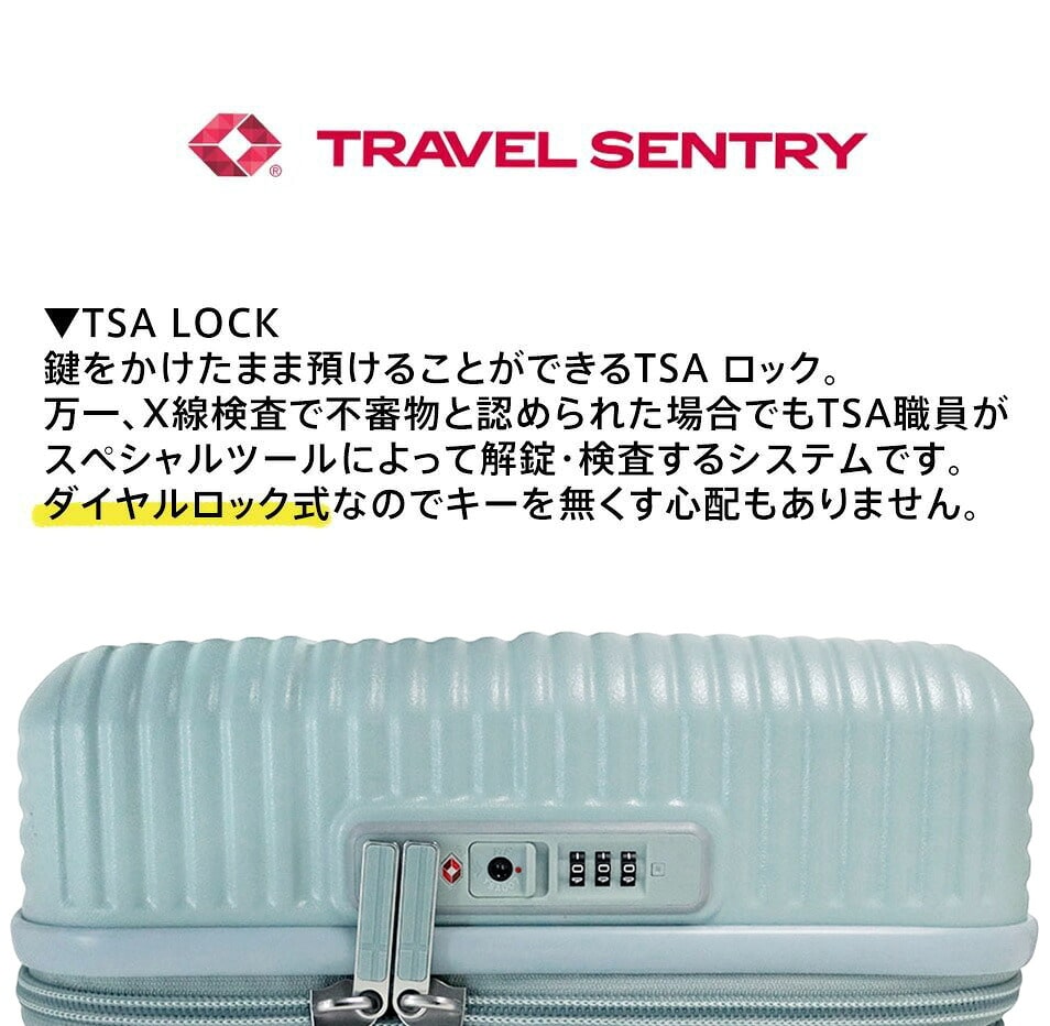 ・TSAに承認されたロックの為、TSA対応国へ渡航の際も鍵を掛けたまま預け入れが可能。