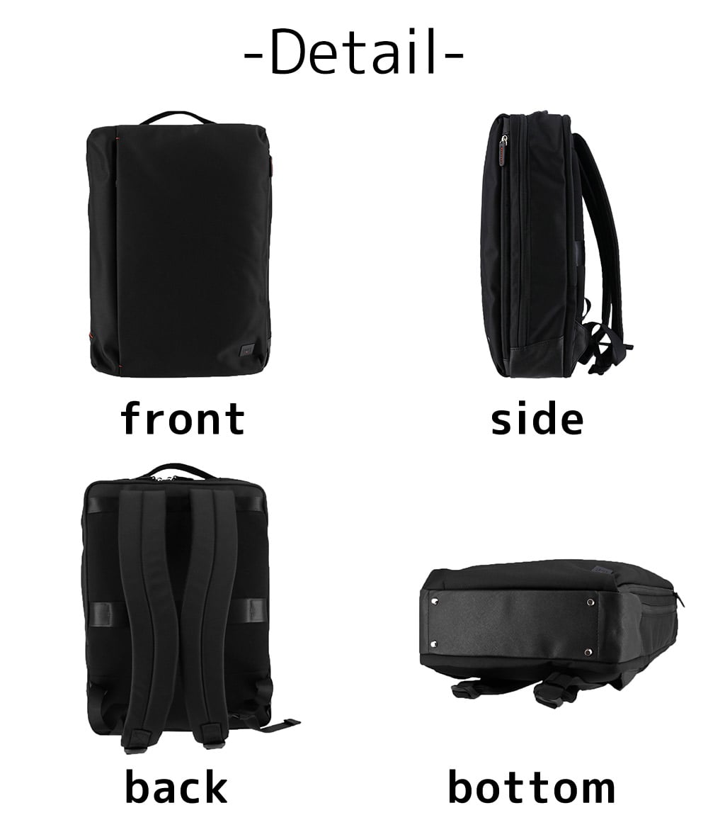 ・15.6インチまでのノートPCやB4ファイル、500mlペットボトル等を管理出来る多機能なポケットが充実。