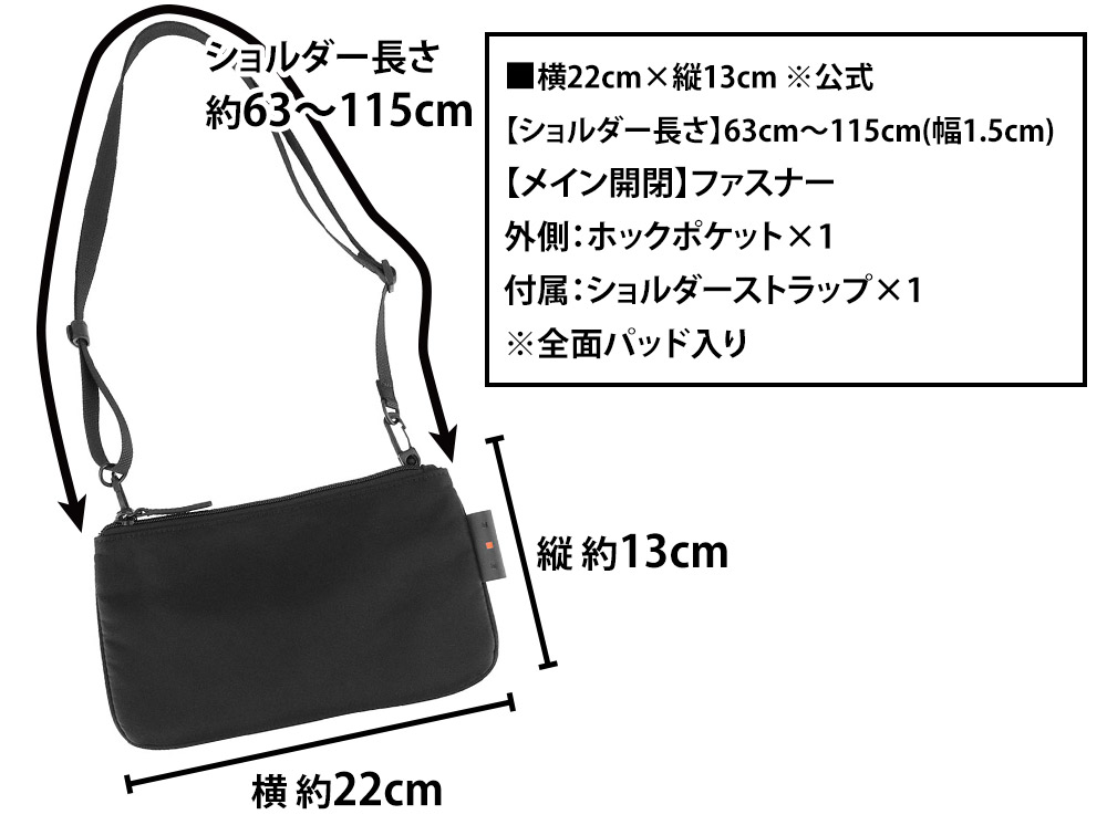 【ショルダーベルト長さ】63cm~115cm(幅1.5cm、取り外し可)