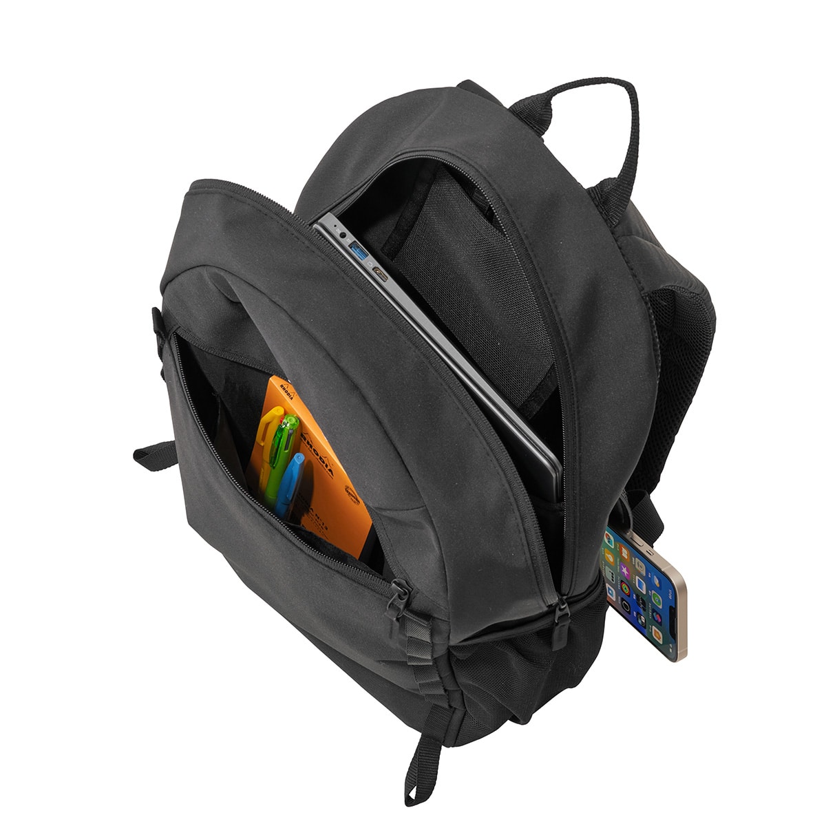 前面ファスナーポケット×1(オープンポケット×3、ペン挿し×3)