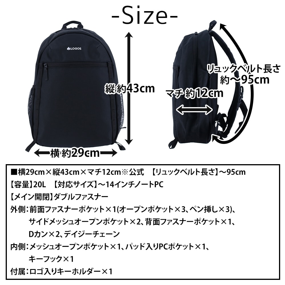 ロゴス バッグ リュック デイパック バックパック 14インチPC収納 撥水 LOGOS スタンダードデイバッグ 20L A4対応 374007 メンズ レディース キッズ 送料無料 プレゼント ギフト ラッピング無料 正規代理店 1.ブラック -37400709