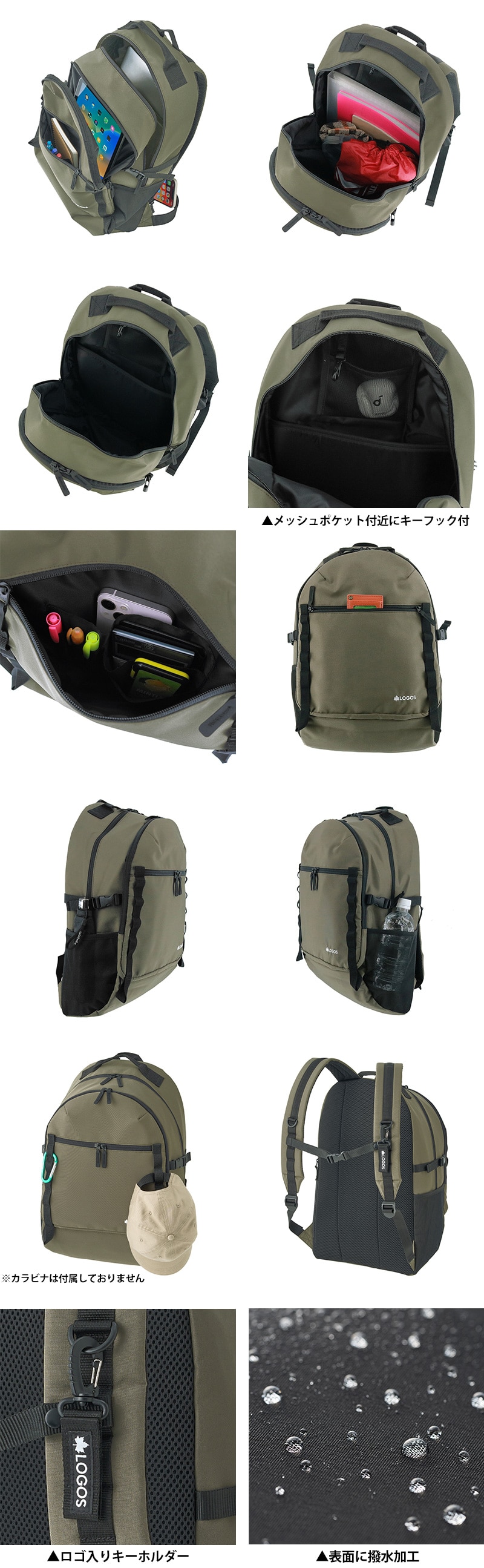カラビナで、マグカップやキャップなどの吊り下げにも便利。