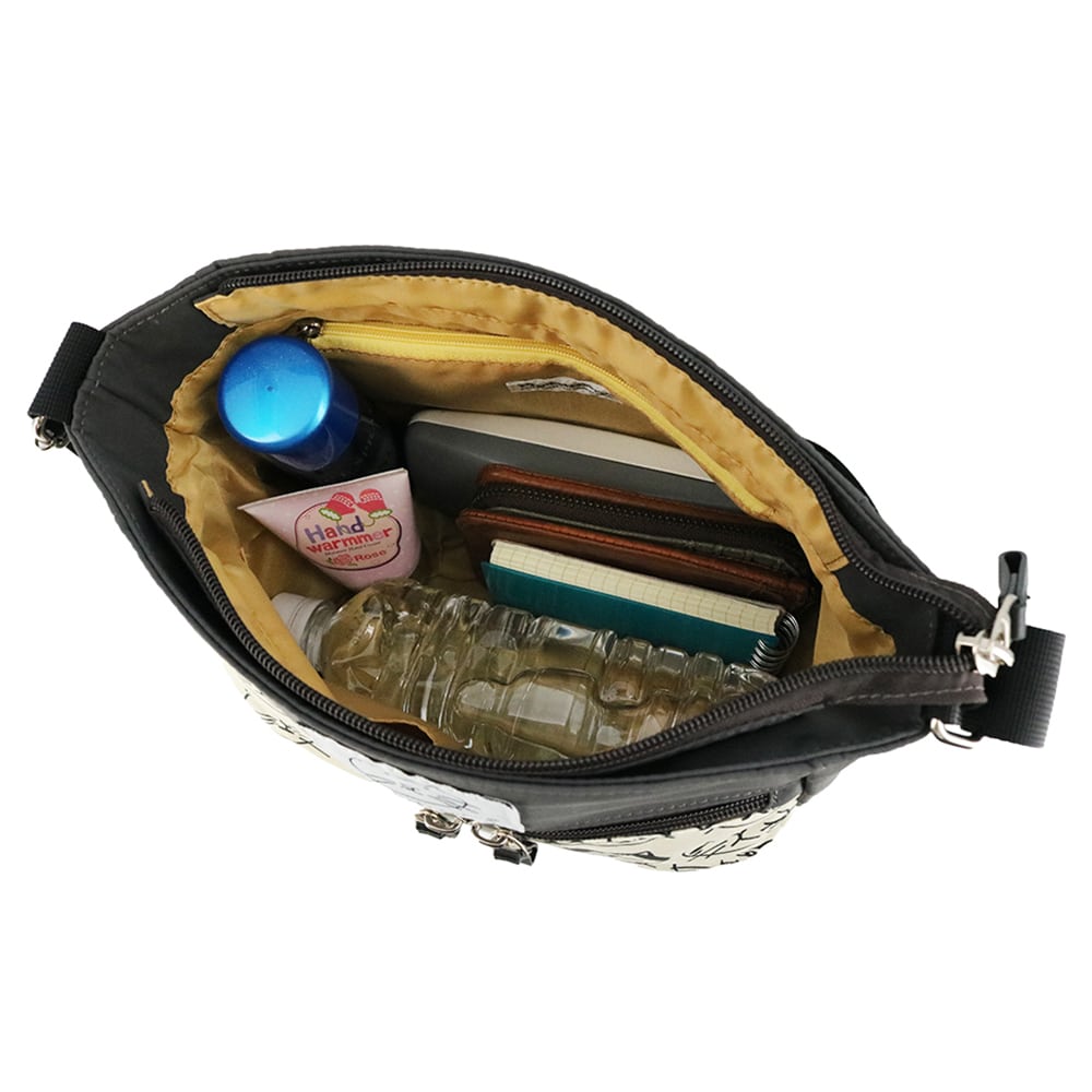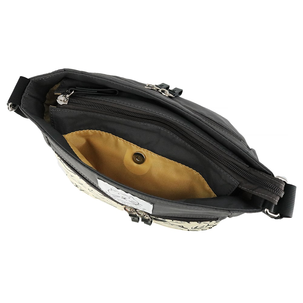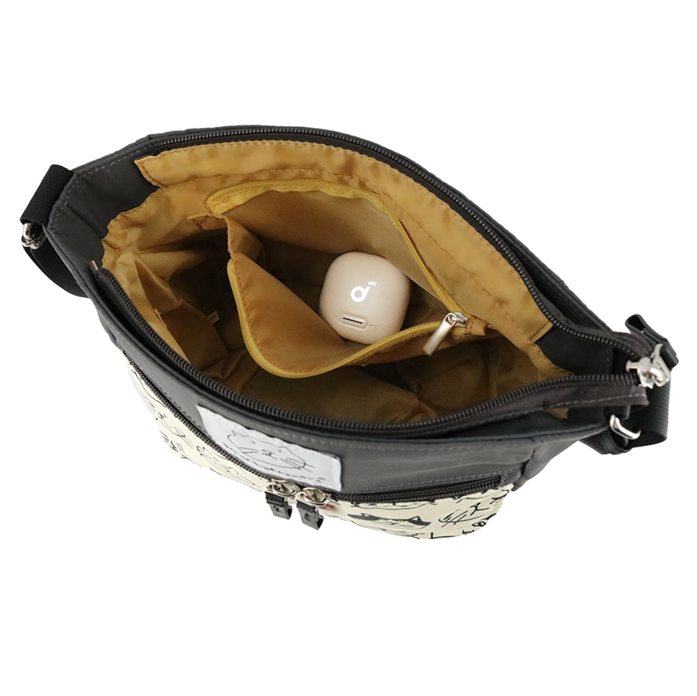 無地のリサイクルナイロンとプリント生地を合わせた、ソフトで軽量な【アベニュー】シリーズのショルダーバッグ。