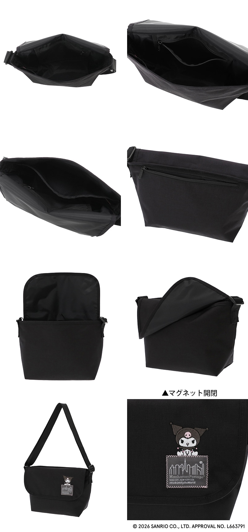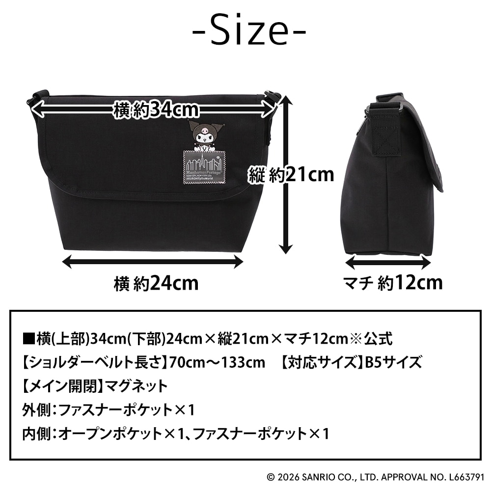 マンハッタンポーテージ サンリオ クロミ 斜め掛けバッグ カジュアルメッセンジャースリム MP05JRSBPDMGNT500KRM メンズ レディース キッズ コラボ 黒 限定モデル 送料無料 誕生日プレゼント ギフト ラッピング無料 正規代理店 ブラック -1000