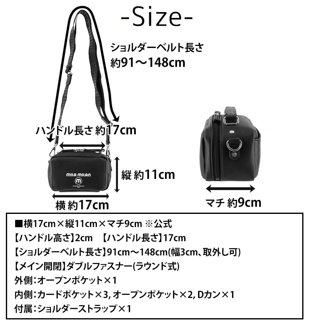 【ショルダーベルト長さ】91cm~148cm(幅3cm、取外し可)