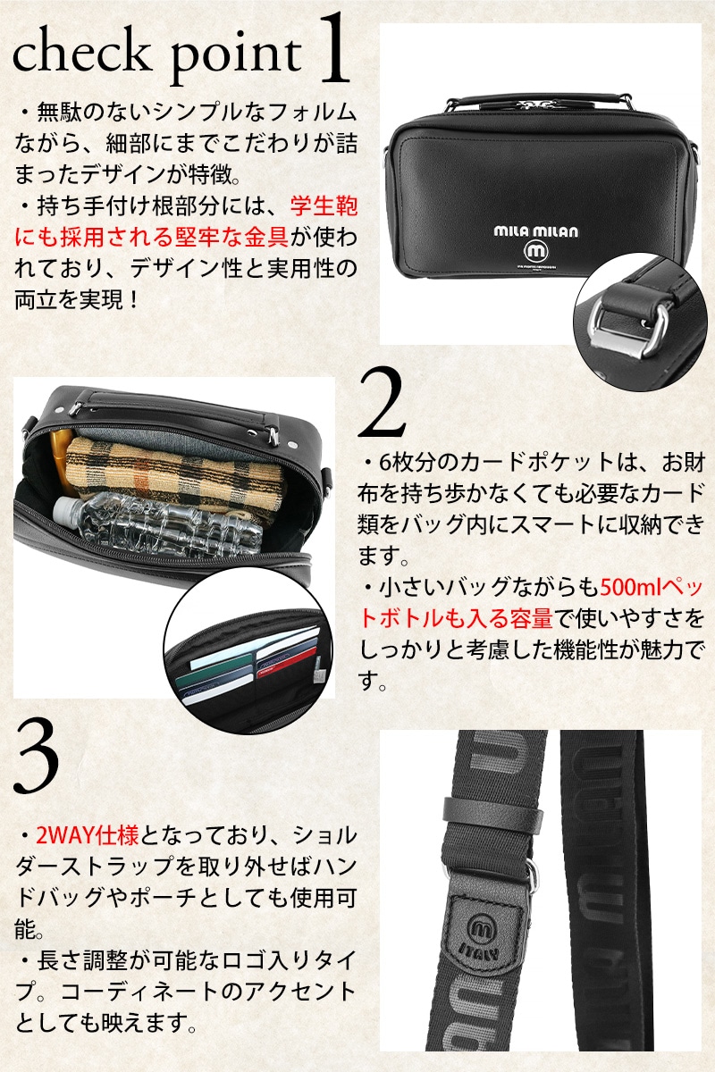 ミラ・ミラン バッグ ショルダーバッグ 手提げバッグ 斜めがけバッグ 2WAY mila milan オット 手つきショルダー 258162 メンズ レディース 黒 白 送料無料 誕生日プレゼント ギフト 【正規代理店】 2.ホワイト -wht