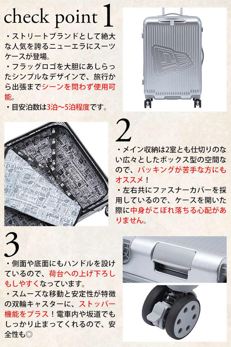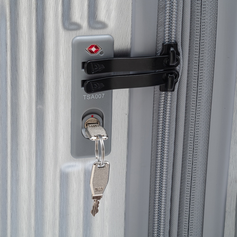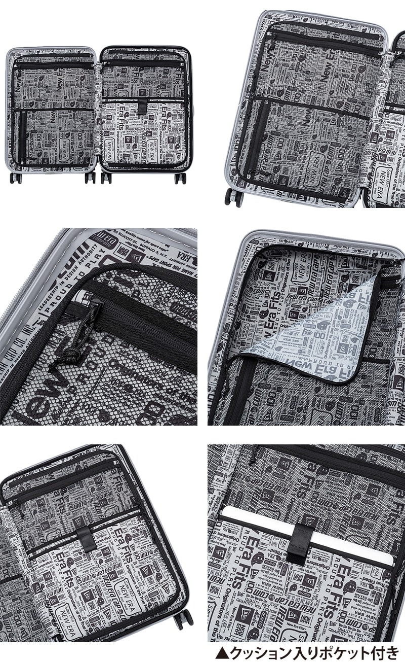 New Era Flagロゴがエンボスで入るオリジナルボディーを採用したキャリーケース(Mサイズ)。