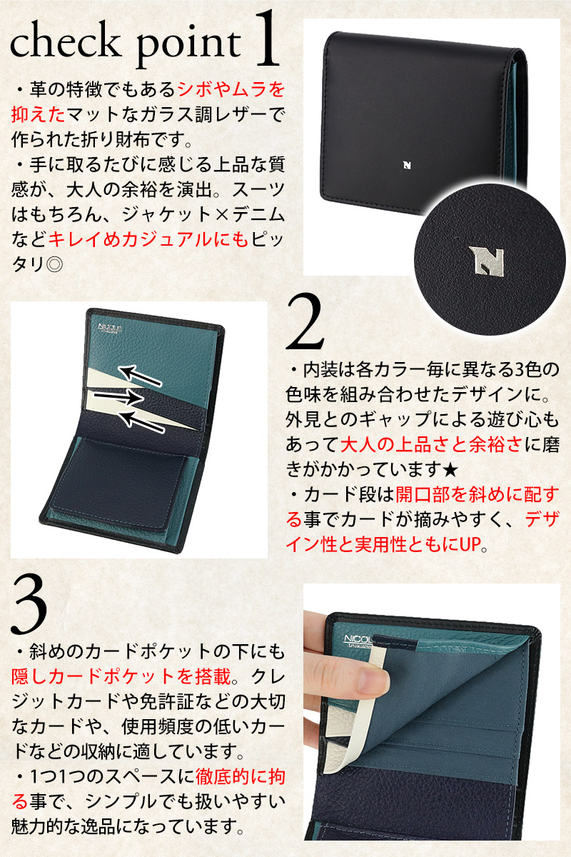 キーワード: 20代 30代 40代 普段使い デイリーユース タウンユース 小さい 薄い 軽い 小銭入れ付き ツルツル レザー 大人 上品 ワンポイント 男女兼用 ユニセックス シンプル シック モダン スマート 就職 入学 お祝い 誕生日 記念日 彼氏 恋人 父 プレゼント ギフト ラッピング ラッピング無料 メンズ レディース 男性 女性 通勤 通学 ビジネス 学生 ブランド ポイント消化 ニューバッグワカマツ ニューバックワカマツ