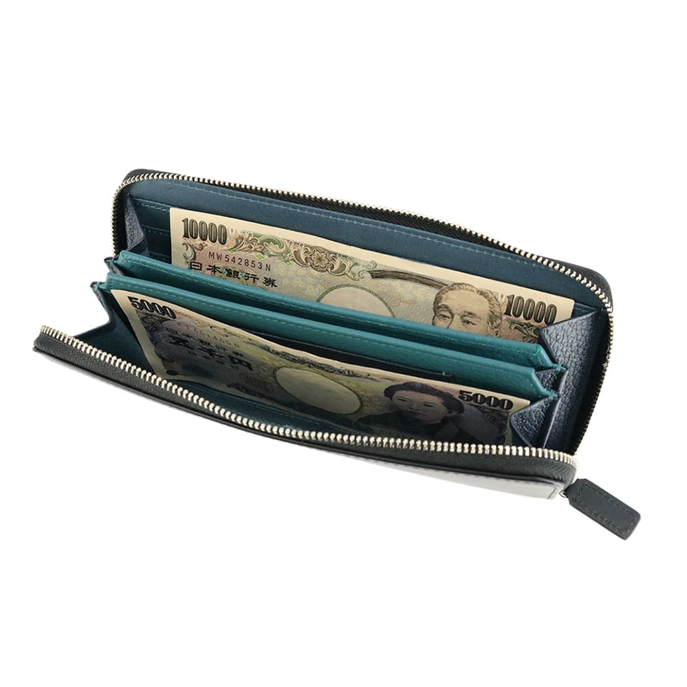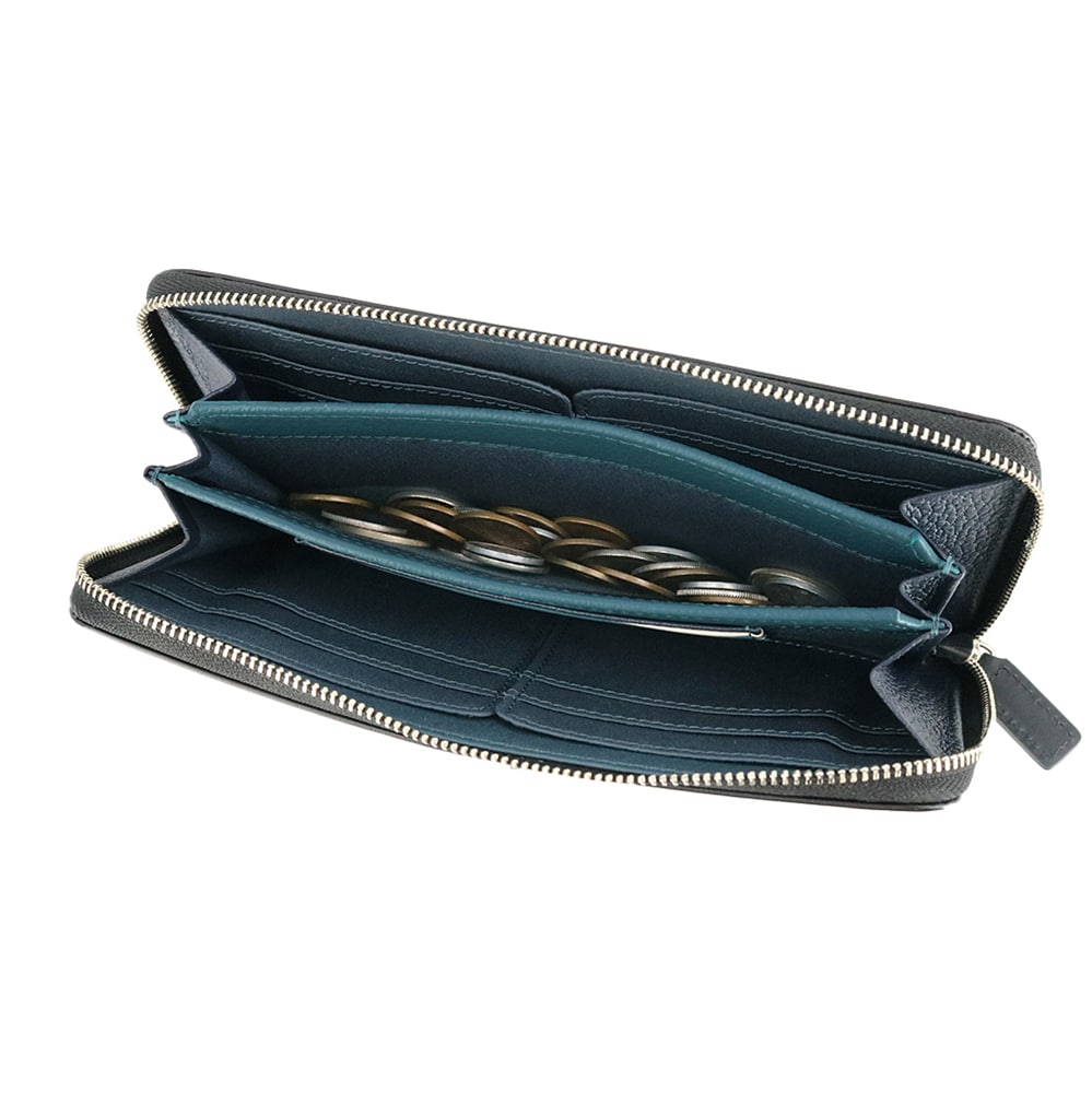 素早くアクセス出来るオープンタイプの小銭入れは、高さがありファスナーまでの距離が近いので、財布内で小銭がこぼれにくくなっています。