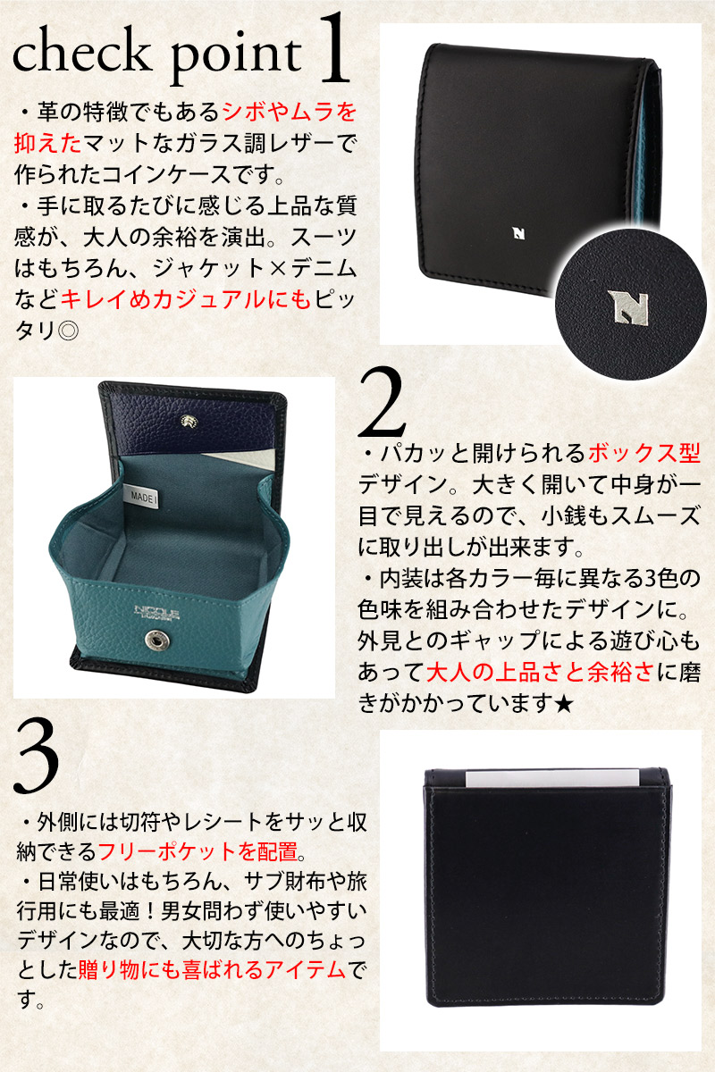 キーワード: 20代 30代 40代 普段使い デイリーユース タウンユース 小さい 手のひらサイズ 薄い 軽い ツルツル レザー 大人 上品 ワンポイント 男女兼用 ユニセックス シンプル シック モダン スマート 就職 入学 お祝い プチギフト 誕生日 記念日 彼氏 恋人 父 プレゼント ギフト ラッピング ラッピング無料 メンズ レディース 男性 女性 通勤 通学 ビジネス 学生 ブランド ポイント消化 ニューバッグワカマツ ニューバックワカマツ