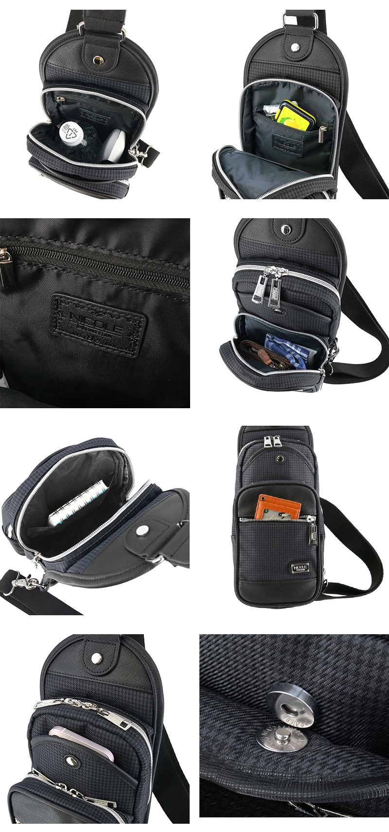 財布や携帯電話、鍵や手帳などの最小限の身の回りの物をすっきりと収納できます。