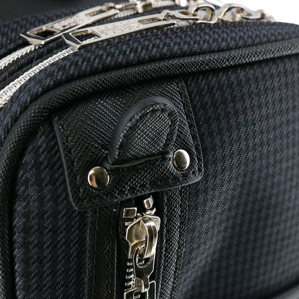 本体にはトレンド感のある柄素材に高級感のあるサフィアーノ型押し合皮を使用。