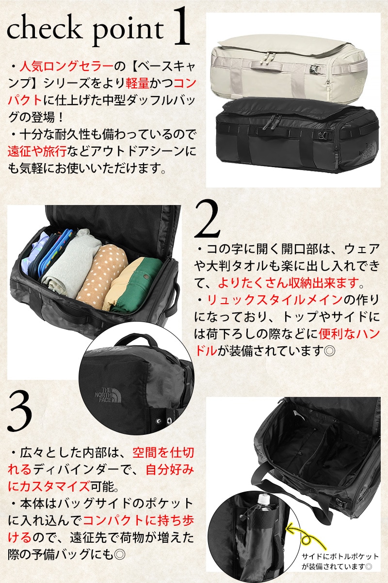 遠征やギア収納用に定評をもつ人気のロングセラー『ベースキャンプ(BC)』シリーズを、より軽量でコンパクトに仕上げたトラベル用の中型(31L)ダッフルバッグ登場。