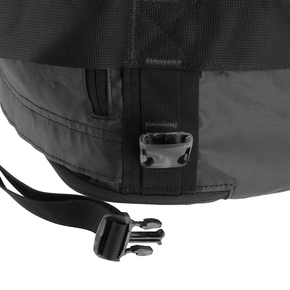 素材は、環境に配慮したリサイクルポリエステルを基布に採用した、300デニールTPEファブリックラミネート。十分な耐久性と軽量性を両立し、生地の防水性を向上させています。