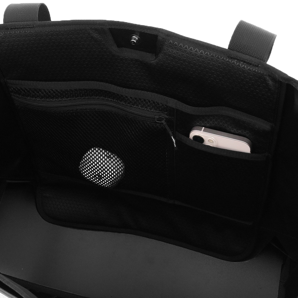 13インチ対応PCスリーブと小分け収納できる吊り下げ式オーガナイザーポケットを装備。