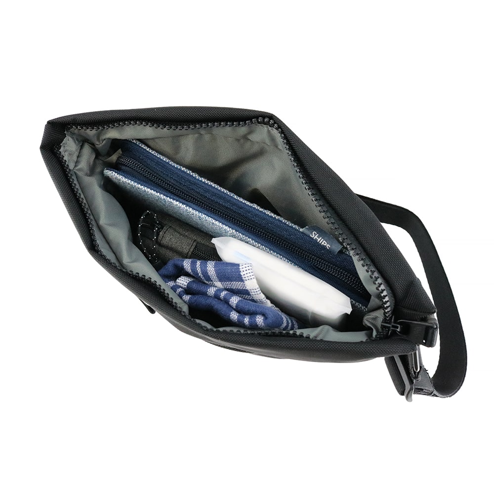 メイン収納部はポケットのない1気室構造で、引っ掛かり等を気にせずアイテムを自由に詰め込めます。