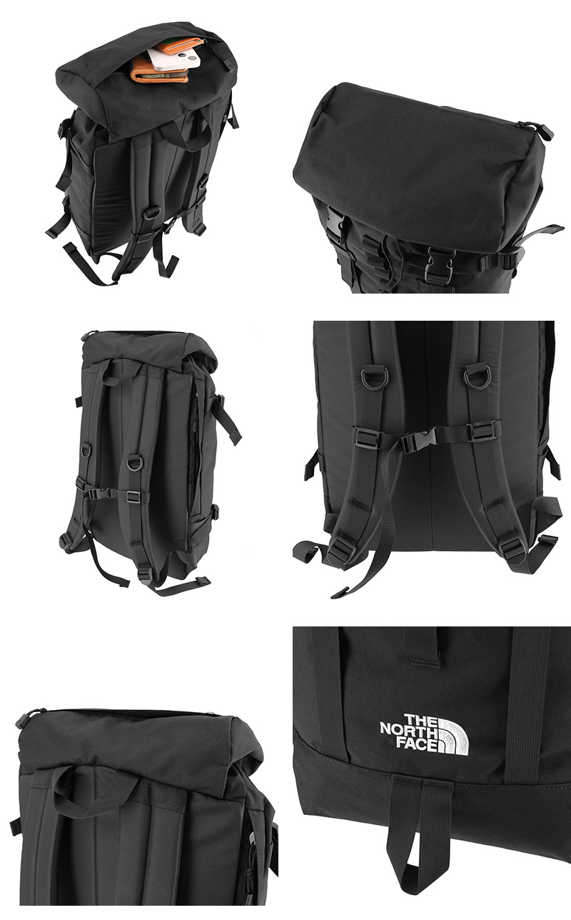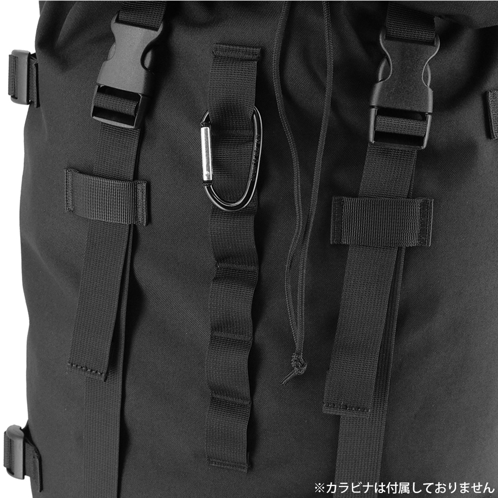 バックルとドローコード、2種類の開閉方法を採用したロールトップ風デザインのバックパック。