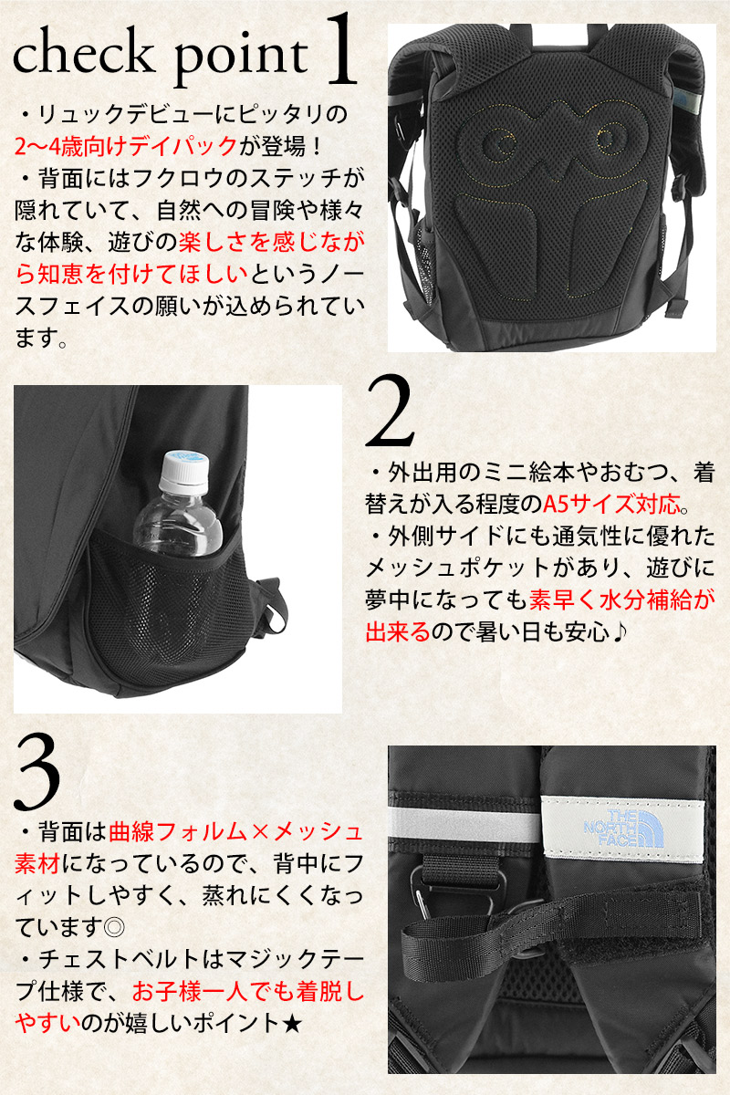 ・背面は通気性、クッション性に優れたメッシュパネル構造で、遊び心のあるフクロウデザインに