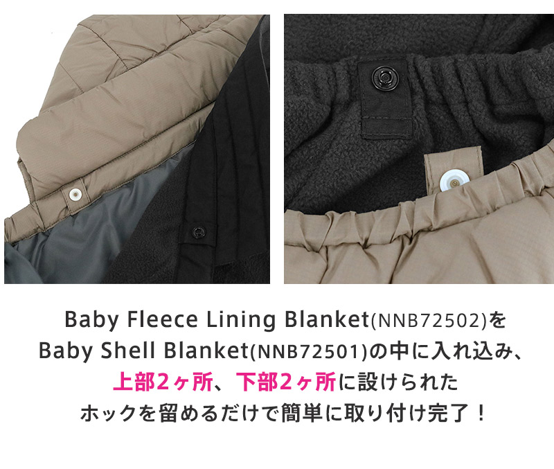 専用ドットボタンでBaby Shell Blanketと連結でき、保湿性を高めるレイヤリングが可能。