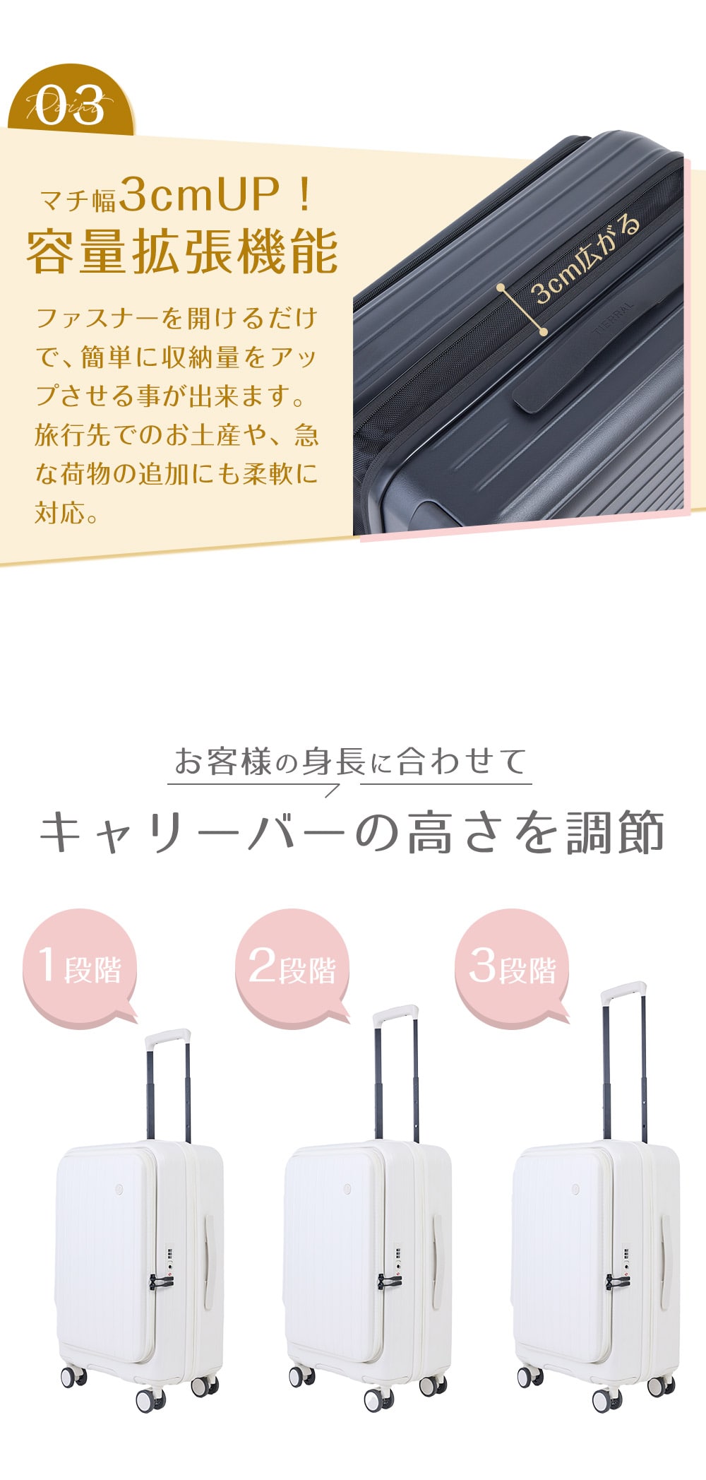 キーワード: 走行音が静か TTMR2*002 旅行鞄 旅行バッグ 中型 軽量 大容量 75L 容量拡張 黒色 白色 パステル かわいい 可愛い おしゃれ お洒落 かっこいい おすすめ オススメ シンプル 高級 ブランド ハードケース ハードタイプ ファスナータイプ ジッパータイプ 4輪ダブルキャスター フロントポケット フロントオープン PC収納 ノートPC ノートパソコン タブレット収納 旅行 修学旅行 国内旅行 海外旅行 5泊 6泊 長期 ビジネス 出張 メンズ 男性 彼氏 レディース 女性 妻 プレゼント ギフトニューバッグワカマツ ニューバックワカマツ