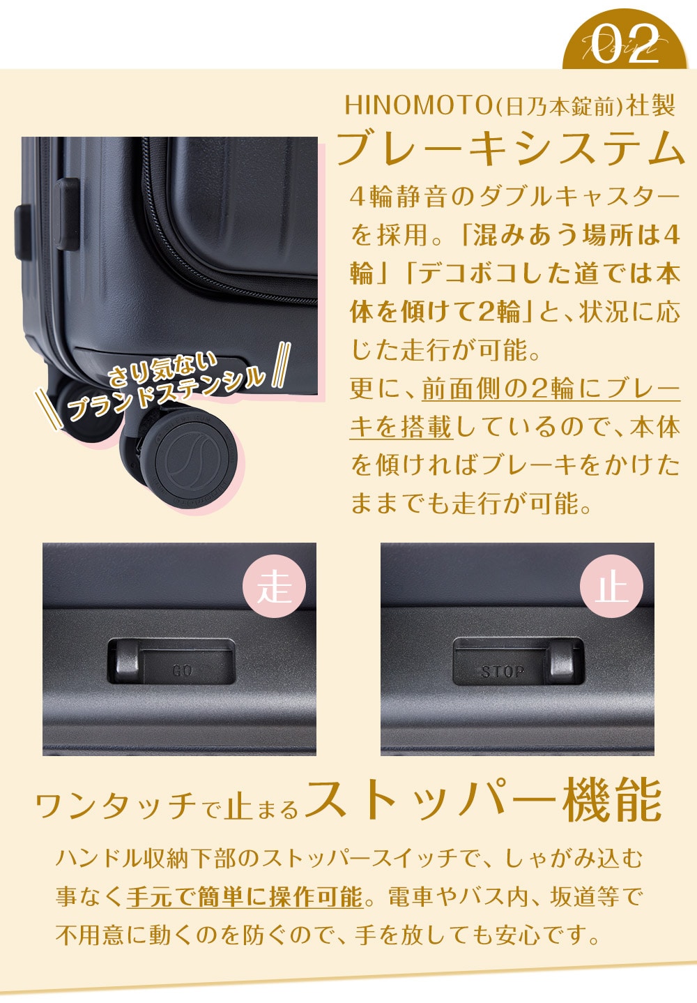 ■静音キャスター(ストッパー機能付き)